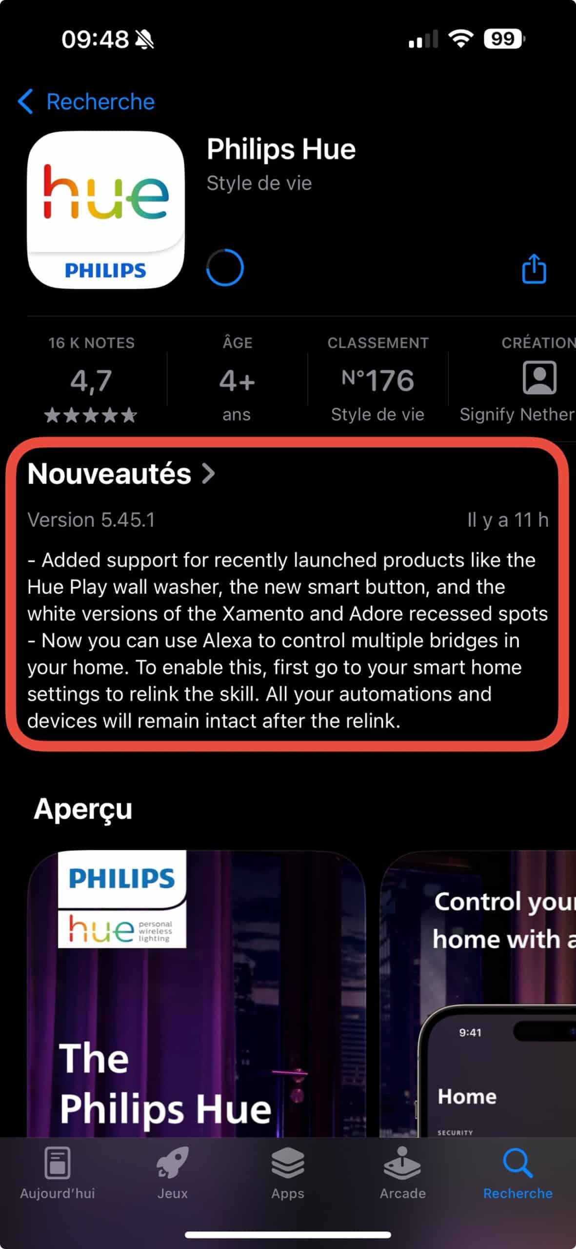 - Support multi-bridge dans Alexa : notre assistante vocale détecte désormais automatiquement tous les ponts Hue rattachés à la même « Maison » dans l’app Hue. Plus besoin de ruser avec plusieurs comptes ou skills Alexa distincts.