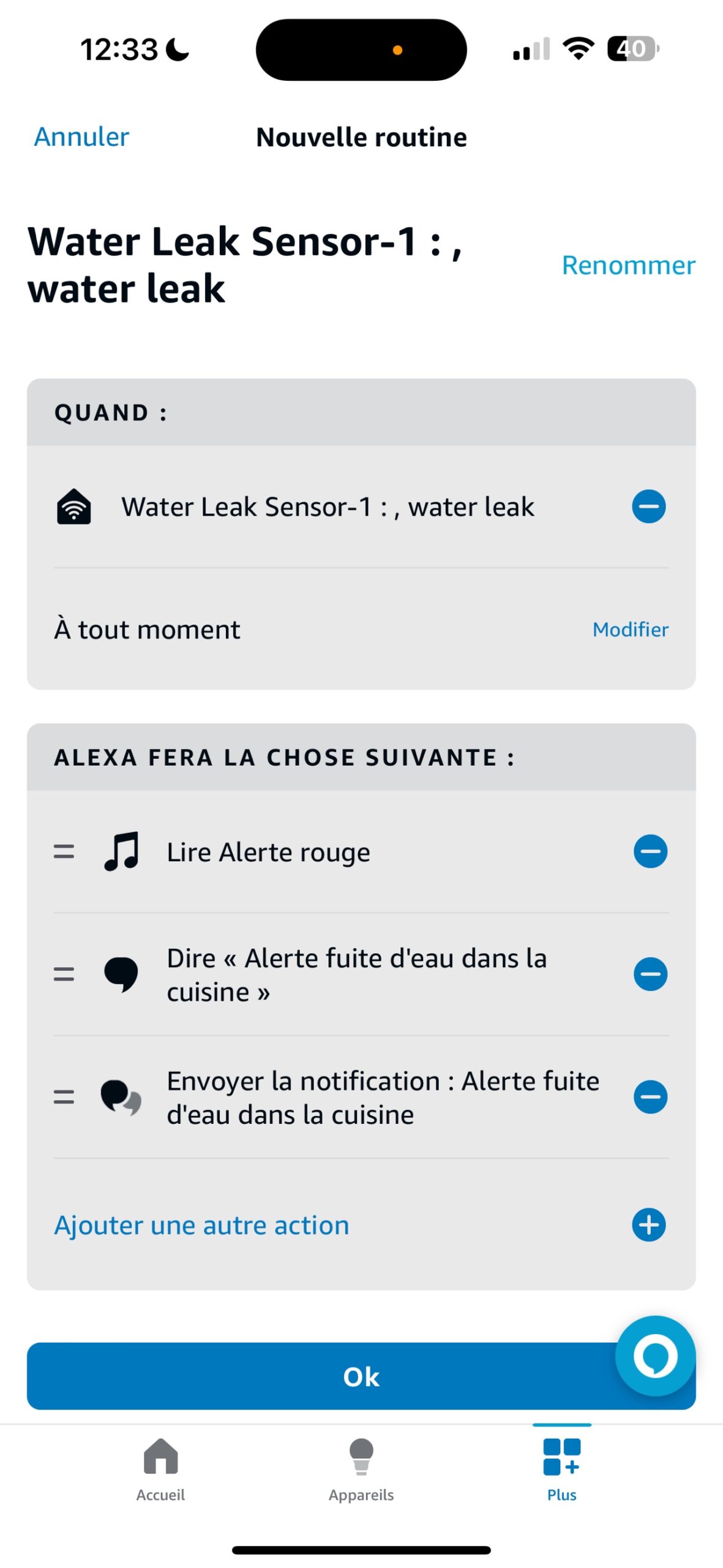 Les capteurs de fuite et de vibration disponible dans les routines Alexa