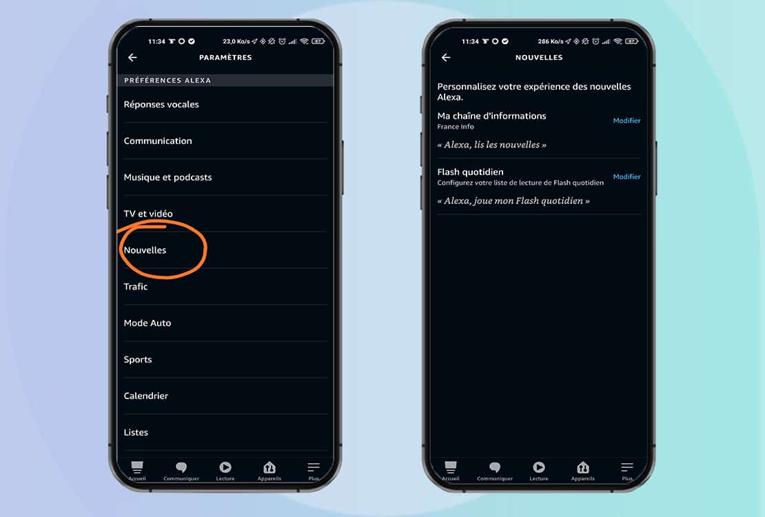 Évidemment, vous pourrez à tout moment consulter une autre source en disant simplement « Alexa, quelles sont les nouvelles de [nom de la chaîne d’informations] ? ». Les flash infos sont toujours disponibles en disant simplement : « Alexa, joue mon flash quotidien ».