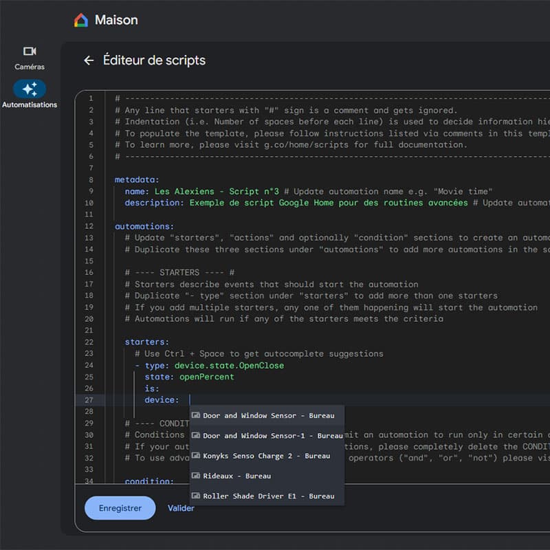 Oui, n’ayons pas peur, créer des automatisations avancées avec Google Home est un vrai jeu d’enfants. Les équipes de Mountain View n’ont pas fait les choses à moitié et nous fournissent un éditeur de scripts conçu pour les utilisateurs débutants comme avancés.