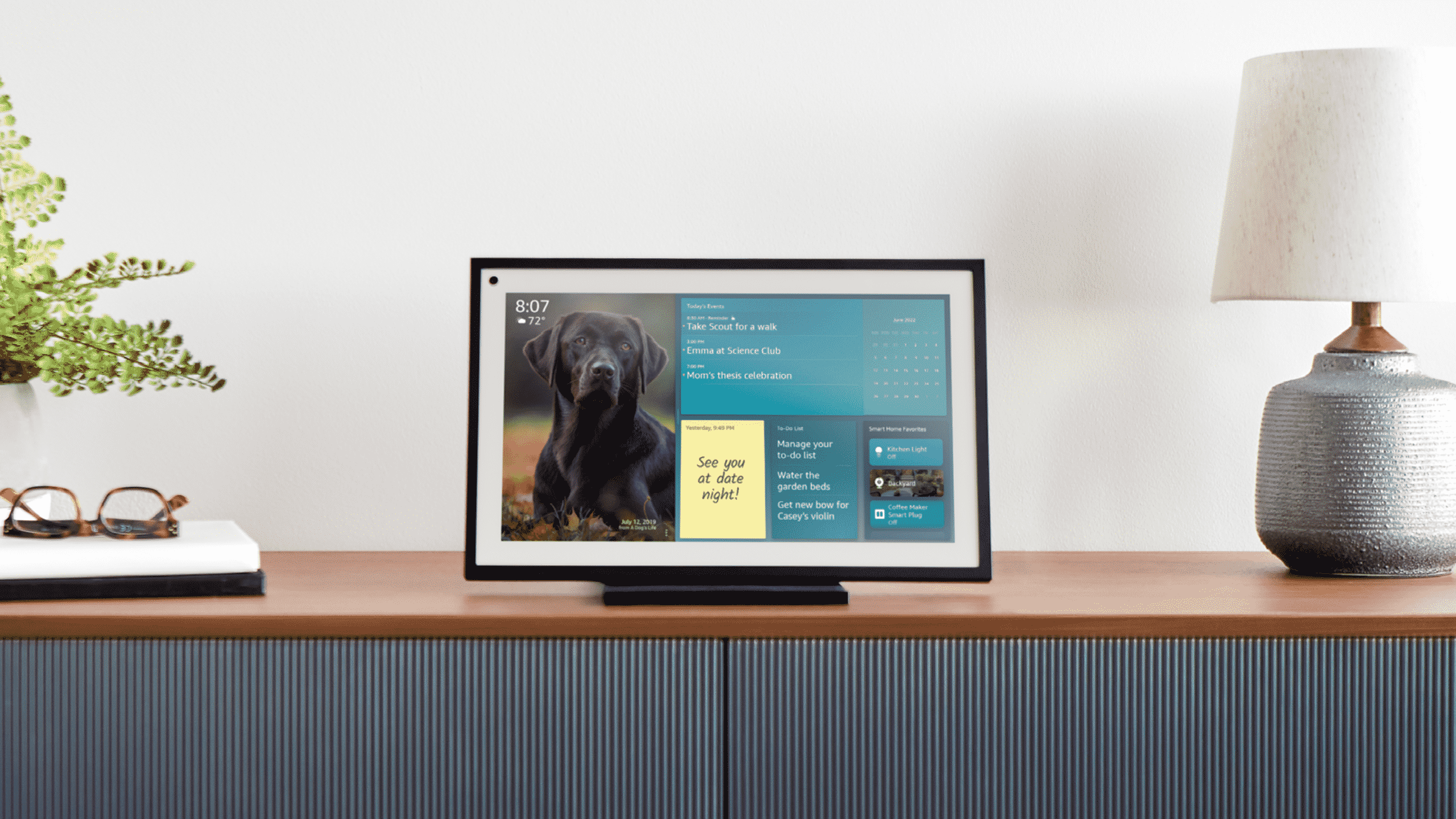- Vos souvenirs en plein écran : grâce à la fonctionnalité Cadre photo, vous pouvez utiliser Echo Show 15 pour afficher vos albums Amazon Photos.