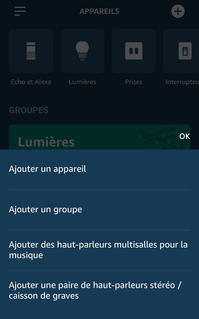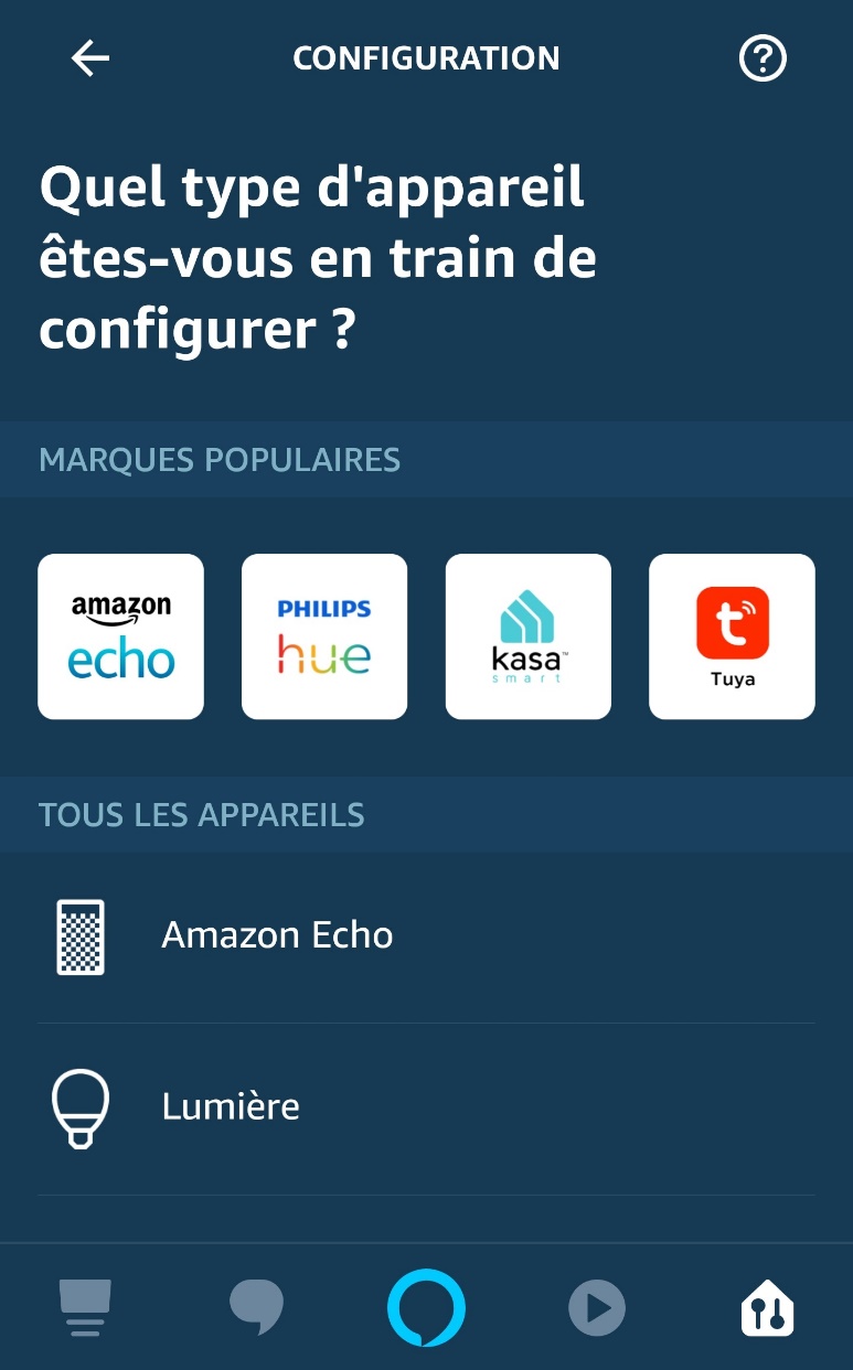 Vous avez aussi accès à vos groupes : lumières, multiroom… Et pour installer des objets, là aussi, ça change un peu. Vous pouvez directement choisir dans une liste ce que vous allez rechercher. Dès le menu, nous voyons des nouveautés : l’écho Sub à une installation dédiée (avec les Echos Plus), les enceintes multi-room aussi. Les nouveautés Echo sont donc déjà là ! Autre changement : il est possible de faire des installations en passant par les marques les plus usités : Echo, bien sûre, mais les ponts come Philips, Kasa pour TP-links, Tuya…
