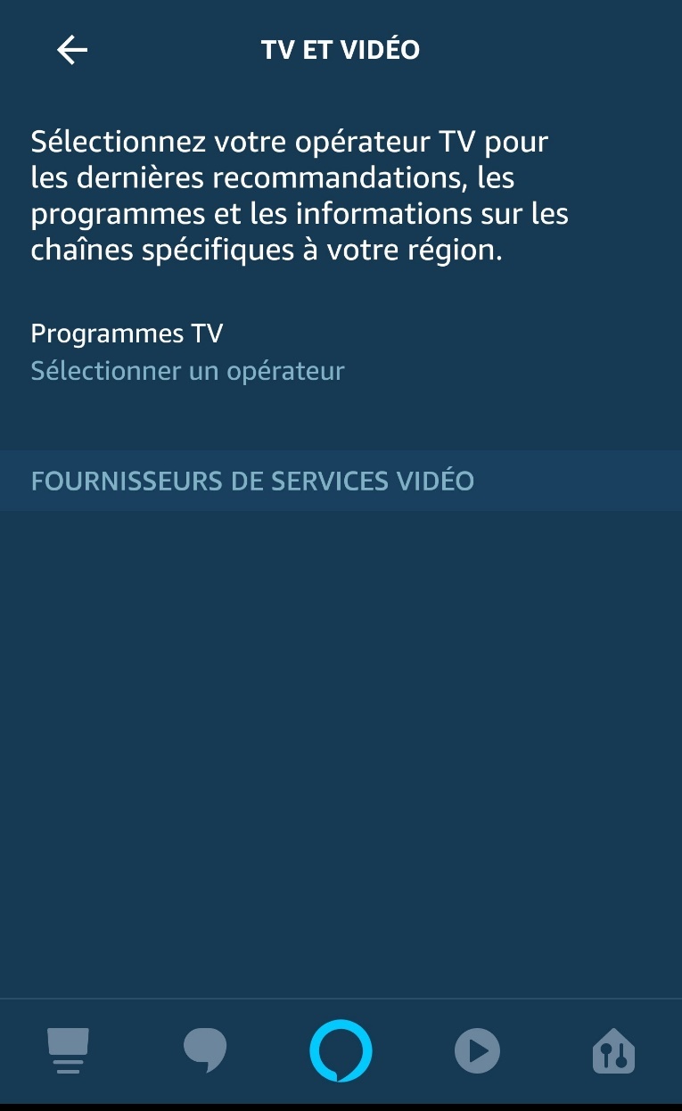 Autre nouveauté, dans les menus, il y a maintenant un dossier TV et vidéo. Et là, vous avez la possibilité de venir y choisir votre opérateur TV pour recevoir les programmes TV, des news… Il sera aussi possible de sélectionner vos fournisseurs de services Vidéo (Netflix, Prime…). Le début du Cast vers des TV connectées ? Via le Fire TV Stick ? Voir autre chose que Prime sur le Spot ? Mais à l’heure actuelle, rien ne fonctionne…