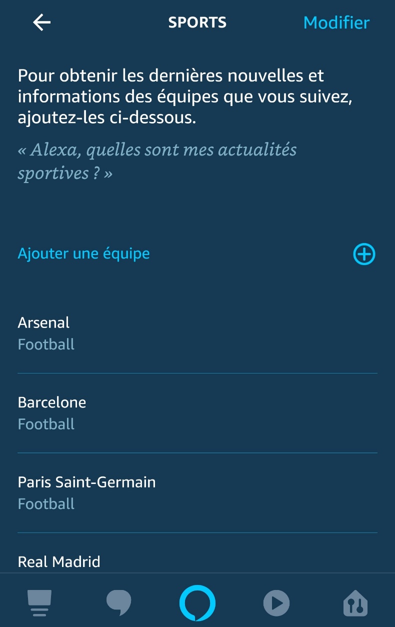 Autre nouveauté dans les paramètres, un onglet sport, pour vous tenir au courant des news de vos clubs préférés. Par défaut, vous avez une liste d’équipes de foot. Mais vous pouvez modifier cela et choisir une équipe particulière… Attention, il vous faut chercher par nom d’équipe et non par sport…