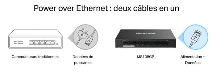 Mercusys a annoncé hier le lancement en France de sa nouvelle série de Switches PoE+ (Power over Ethernet), de nouveaux modèles conçus pour permettre aux TPE comme aux particuliers d’étendre leur réseau simplement. Cette gamme offre des vitesses ultra-rapides allant de 100 à 1000 Mbps avec 5 à 8 ports pour répondre aux divers besoins d’extension du réseau par des appareils auto-alimentés. L’occasion pour nous de vous parler un peu de la technologie PoE qui s’avère particulièrement utile dans nos maisons connectées puisqu’elle permet d’alimenter en réseau comme électricité nos points d’accès Wi-Fi, nos box domotiques, ou encore nos caméras de vidéosurveillance.