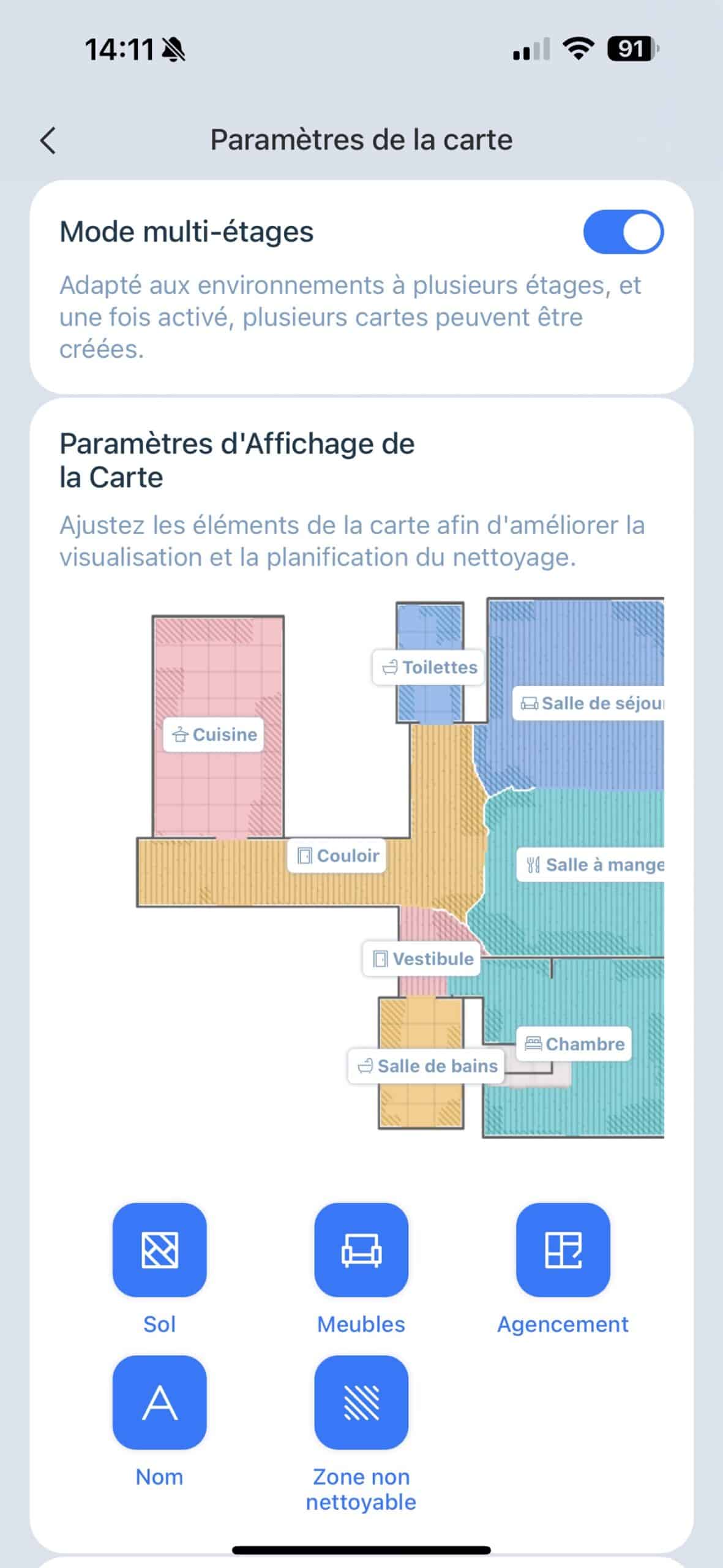 Si elle accusait jusqu’ici un certain retard sur celle de son principal concurrent, Roborock, ce n’est plus du tout le cas aujourd’hui et c’est même probablement la plus agréable à utiliser du marché. Toutes les fonctionnalités sont facilement accessibles, les nombreux paramètres sont intelligibles et les cartes ne disparaissent plus toutes seules. Le fabricant chinois a visiblement résolu ce défaut assez pénible qui touchait plusieurs de ses anciens modèles, c’est une bonne chose.