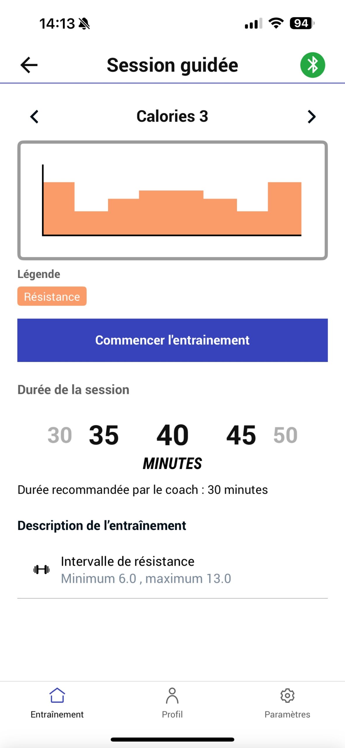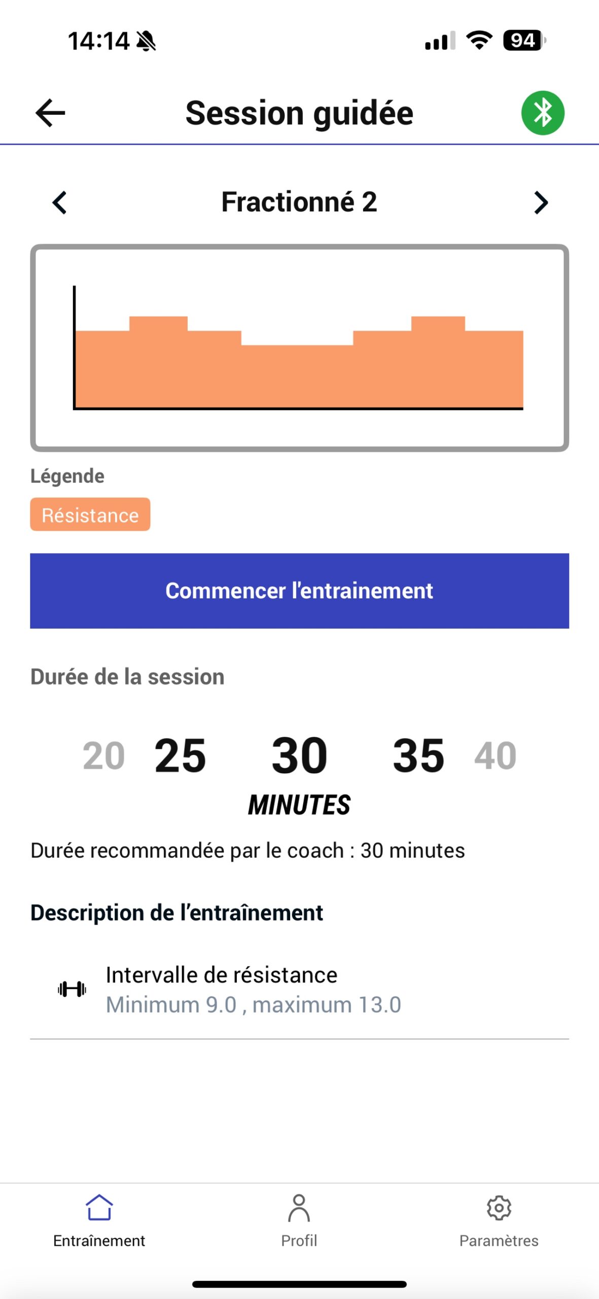 - Soft : un parcours de 5 km à résistance constante et cadence modérée ;