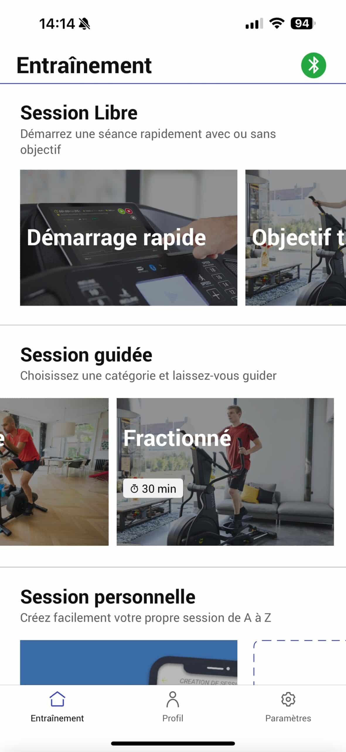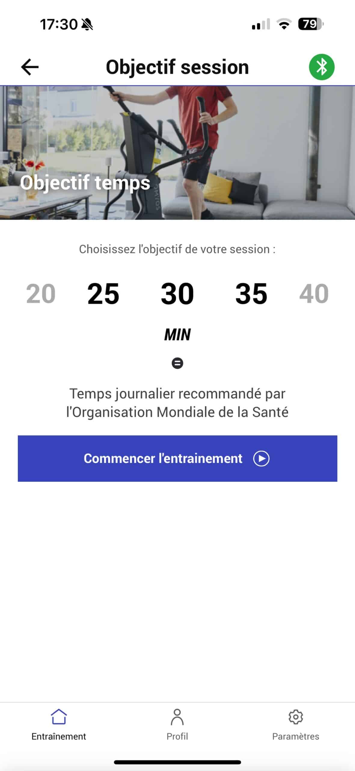 Pour utiliser les fonctionnalités connectées du rameur, il vous faut télécharger Domyos E-Connected, l’application conçue pour les appareils de fitness connectés de la marque. Elle est disponible sous Android comme iOS.