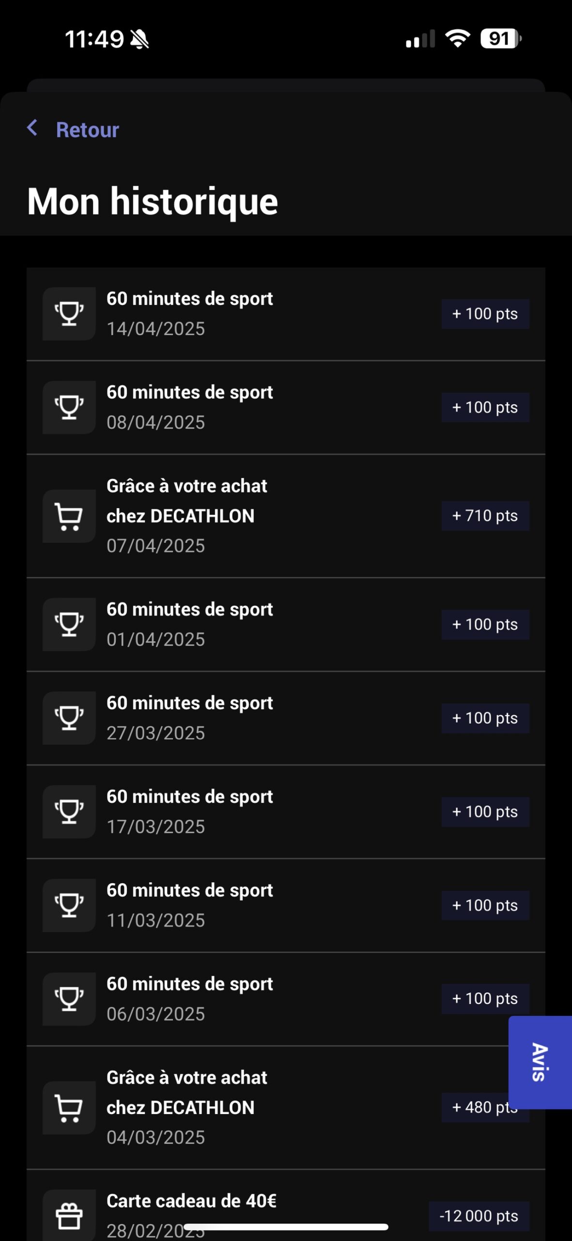 Vous pouvez également créer votre challenge personnel. C’est un bon moyen de garder la motivation sur la durée, d’autant que l’enseigne vous gratifie de 100 points chaque semaine si vous validez une heure d’entraînement. Une petite motivation supplémentaire !