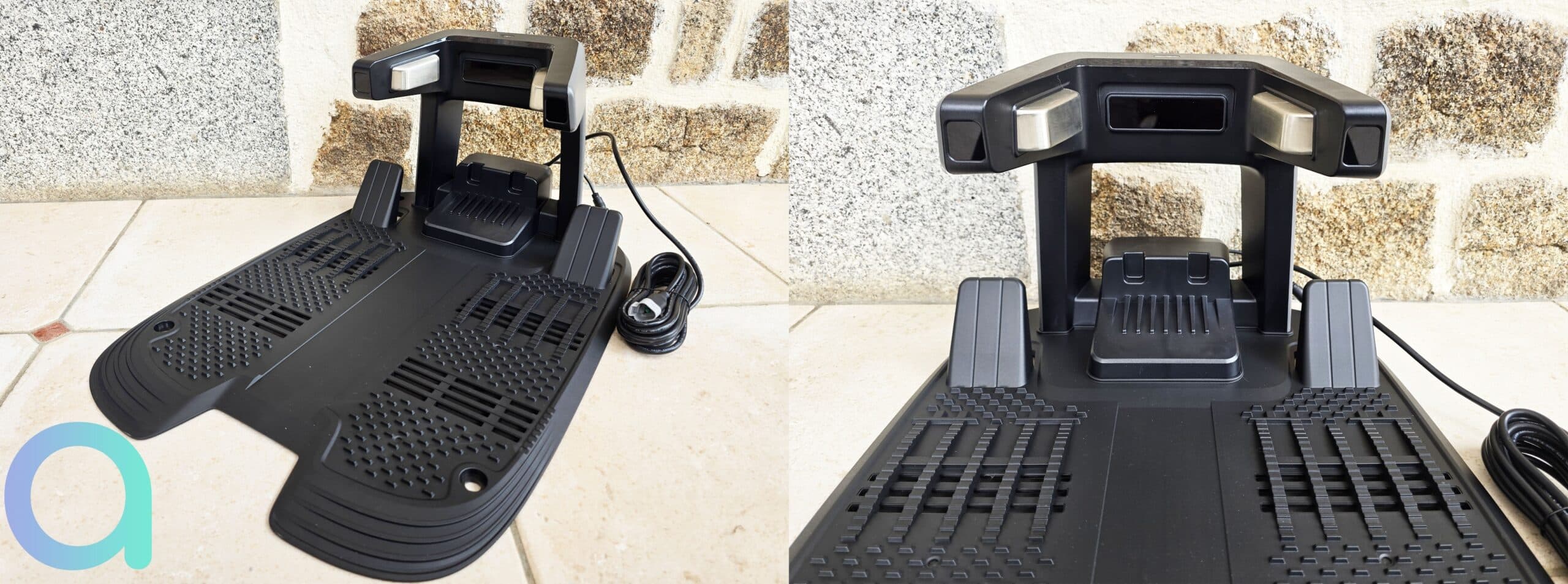 Vu de face, on distingue sur le dessous un peigne anti-scalping mais surtout son système de vision à double caméra sur l’avant. C’est ce que la marque appelle le UltraSense AI Vision.
