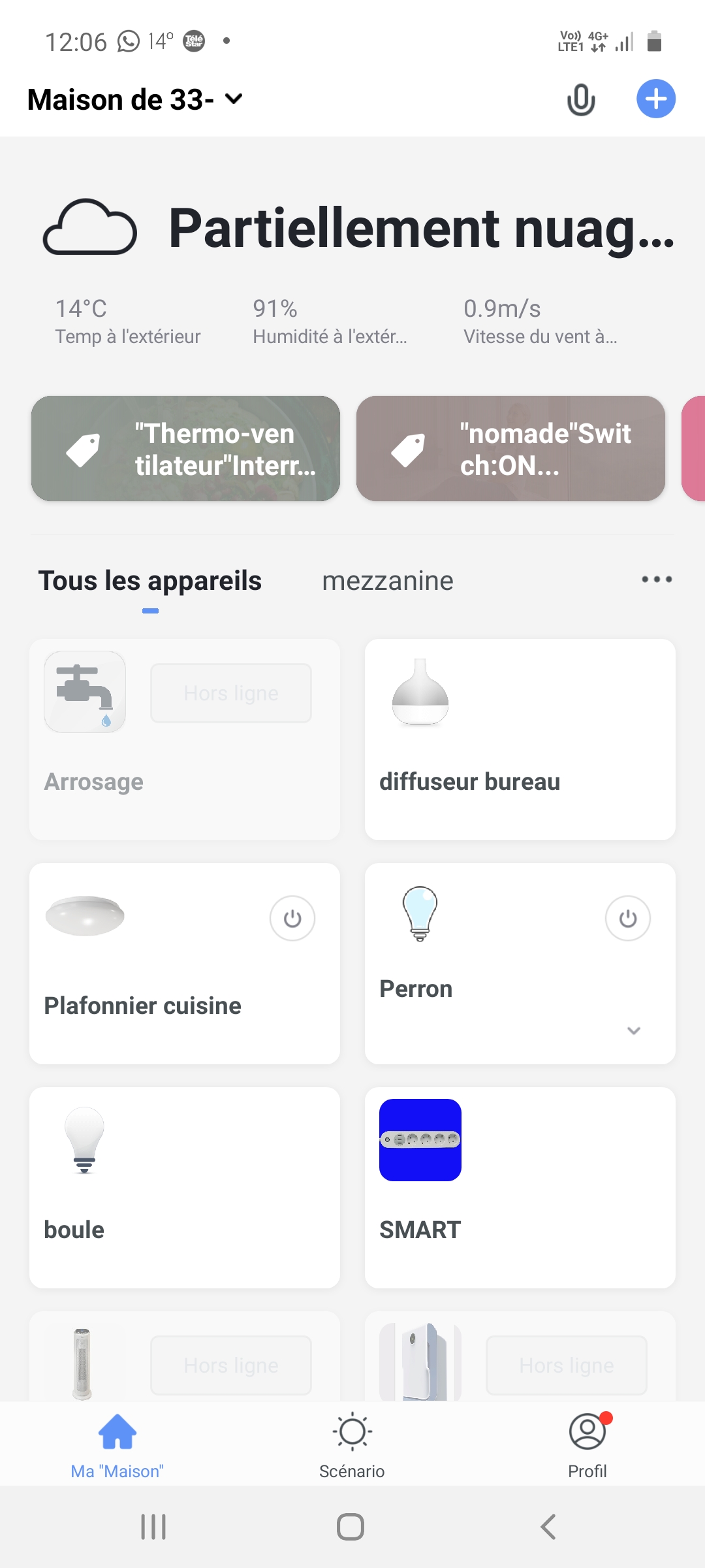 Pour information, après avoir désinstallé et réinstallé l’appareil, les appellations se sont francisées : Veilleuse intelligente et Capteur de mouvement PIR. Les scenarii ou automatisations vont prendre ici tout leur intérêt. Le but étant de déclencher la veilleuse lors de la détection d’un mouvement.