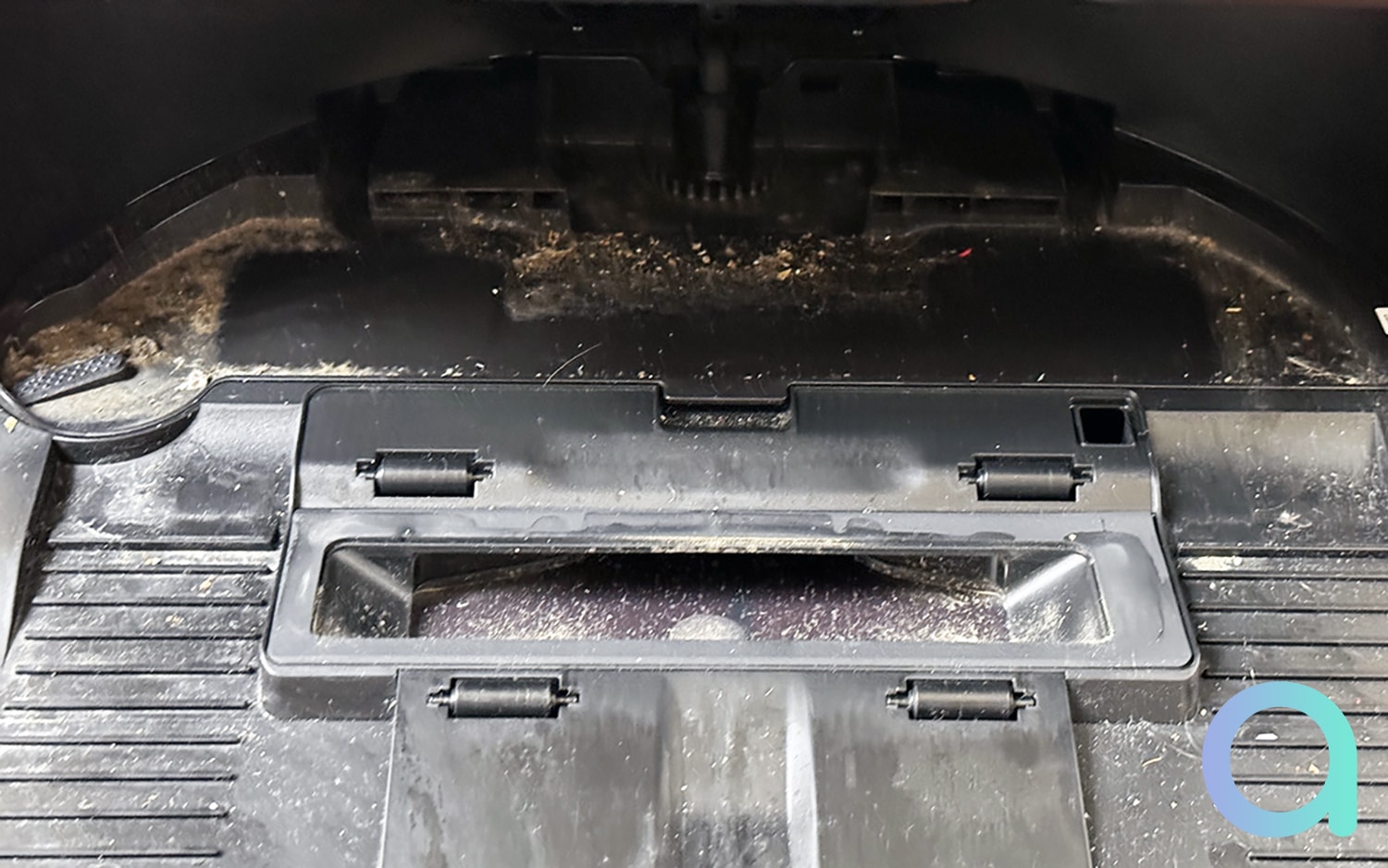 Côté accessoires, par contre, c’est un peu chiche : pas de serpillière de rechange, pas de brosse latérale supplémentaire, pas de filtres HEPA. On note cependant la présence d’un outil de nettoyage comprenant une mini-brosse et un coupe-fil. Intelligemment placé dans le collecteur à poussière, il s’avère très pratique pour un rapide entretien de la station.