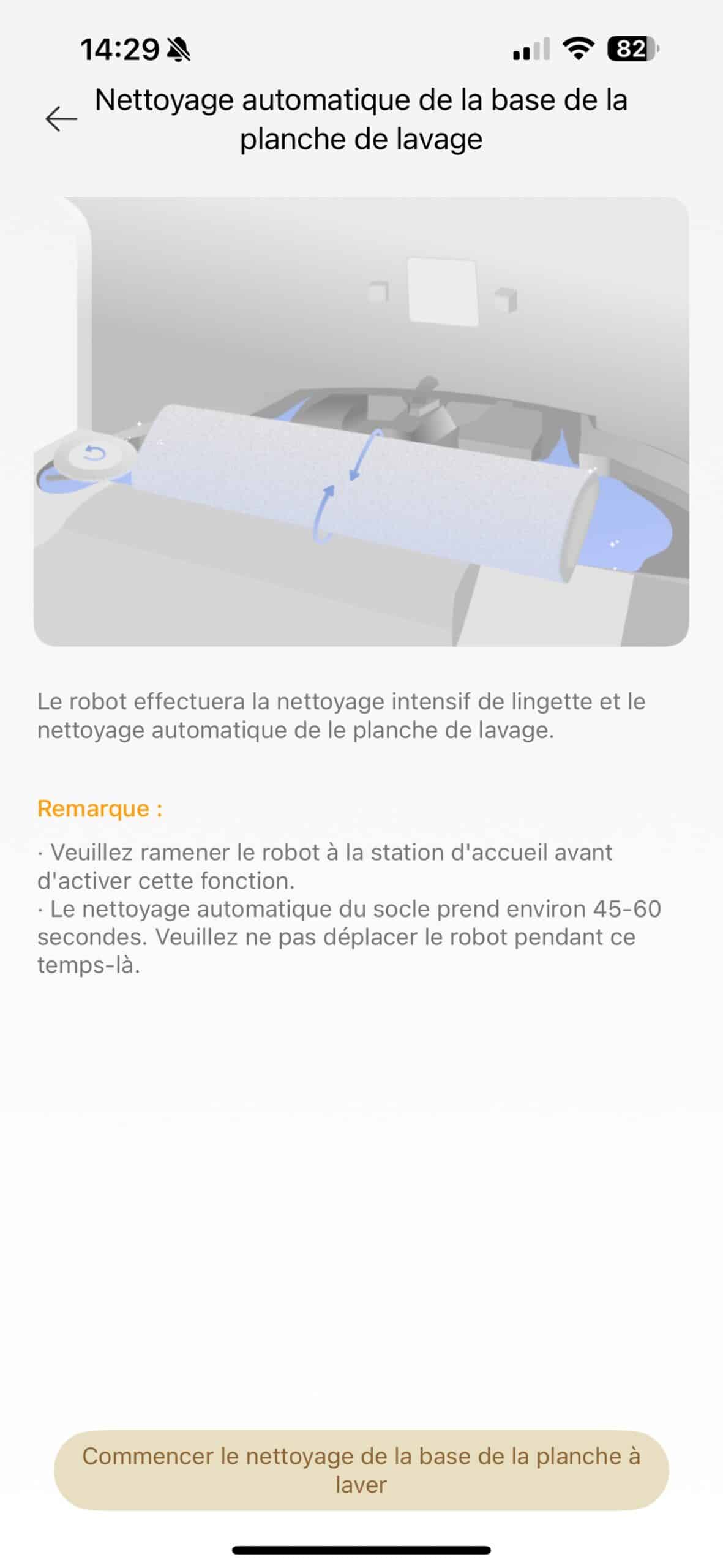 Enfin, notez qu’il existe un mode de nettoyage de la station permettant au robot de nettoyer seul la planche de lavage à l’aide de sa serpillière. L’opération dure environ une minute et, même s’il est loin d’être parfait, le résultat est plutôt pas mal. Un petit coup de brossette pour parfaire le tour et la maintenance vous aura pris seulement trois minutes. On vous laisse juge du résultat.