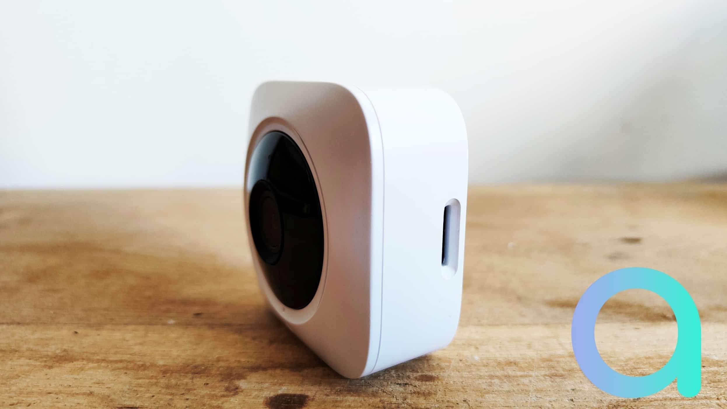 La caméra en tant que telle est relativement compacte avec ses 5,9 x 5,9 x 3,4 cm et elle pèse 70 g. Un vrai poids plume ! Sa forme carrée et ses angles arrondis lui donne un air sympa et passe-partout.