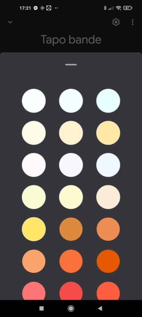 Le ruban renommé ici en Tapo bande, prend place sur la page d’accueil. Un clic dessus et vous accédez aux réglages de celui-ci. Ils n’apparaitront que lorsqu’il est allumé.