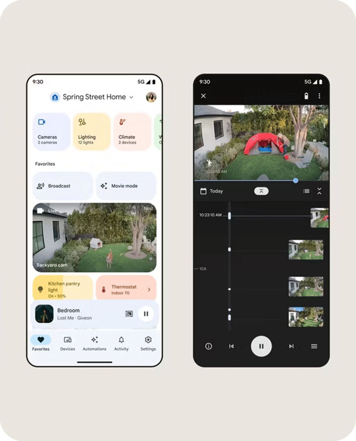 En effet, Google a fait le choix d’une véritable intégration de ses nouvelles caméras Nest avec un lecteur hérité de l’application éponyme qui permet de visualiser les directs, et les enregistrements intelligemment disposés sur une timeline verticale. Les événements seront par ailleurs automatiquement étiquetés en fonction de leur nature (personne, colis, véhicule, activité ou animal). Une nouvelle interface qui vient avec de nouvelles caméras et sonnettes Nest, mais qui sera également disponible pour les modèles plus anciens courant 2023.
