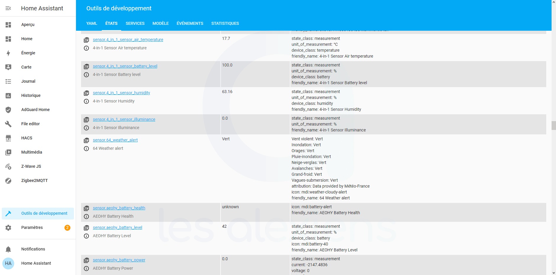 Outils de développement de Home Assistant