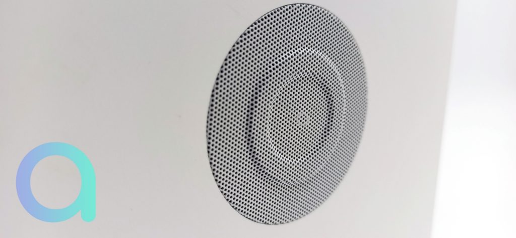 La base va servir à gérer l’ensemble des appareils en se comportant comme un pont Z-Wave. Elle va également servir de sirène grâce à l’hautparleur de 104 dB (à 30 cm) que vous voyez derrière le treillis central. Il s’y cache d’ailleurs un anneau LED sous l’excroissance circulaire. Il va changer de couleur en fonction du statut de la base :