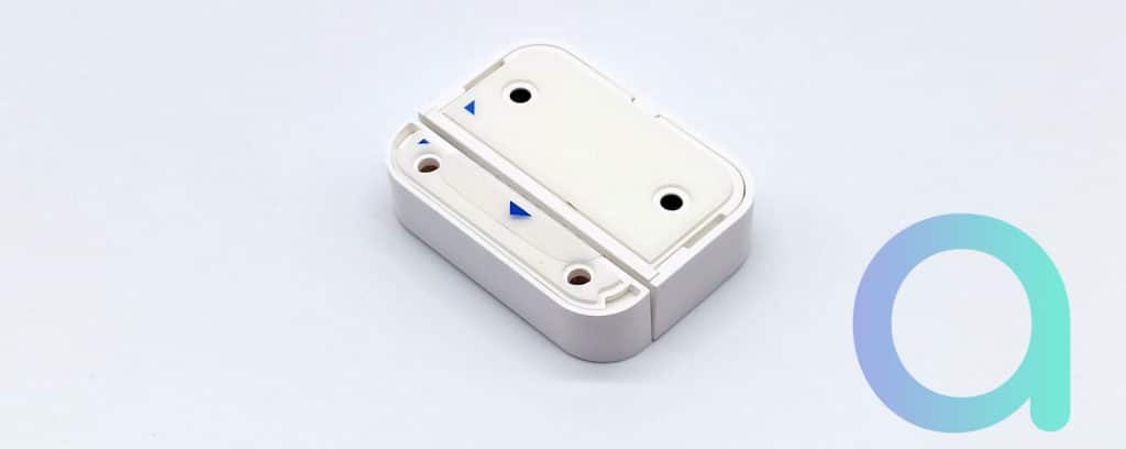 Il est constitué de deux éléments incluant des aimants afin de fermer un circuit électrique et détecter une ouverture quand ce dernier passe en circuit ouvert. Il va tolérer une ouverture de 2,54 cm (ou 1 pouce) avant de détecter une ouverture. Il est donc nécessaire de tester son positionnement avant de le fixer à demeure pour vous assurer qu’il n’y a pas de risque que votre porte reste entrebâillée sans déclanchement.