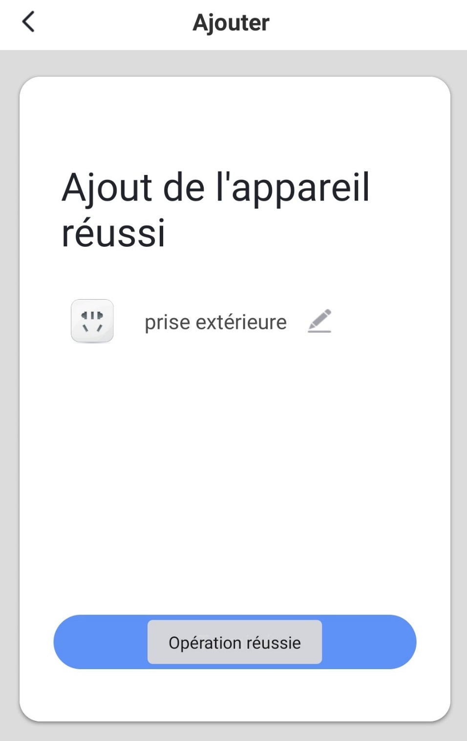Dans l’application, appuyez sur le petit plus en haut à droite pour ajouter un appareil et sélectionnez « prise », sélectionnez votre Wi-Fi (et le GPS si nécessaire) et laissez chercher. Une fois la prise trouvée, vous pouvez la renommer. Ce sera son nom générique.