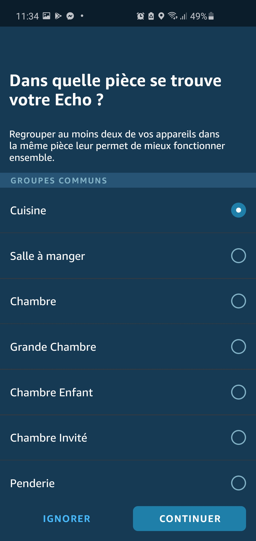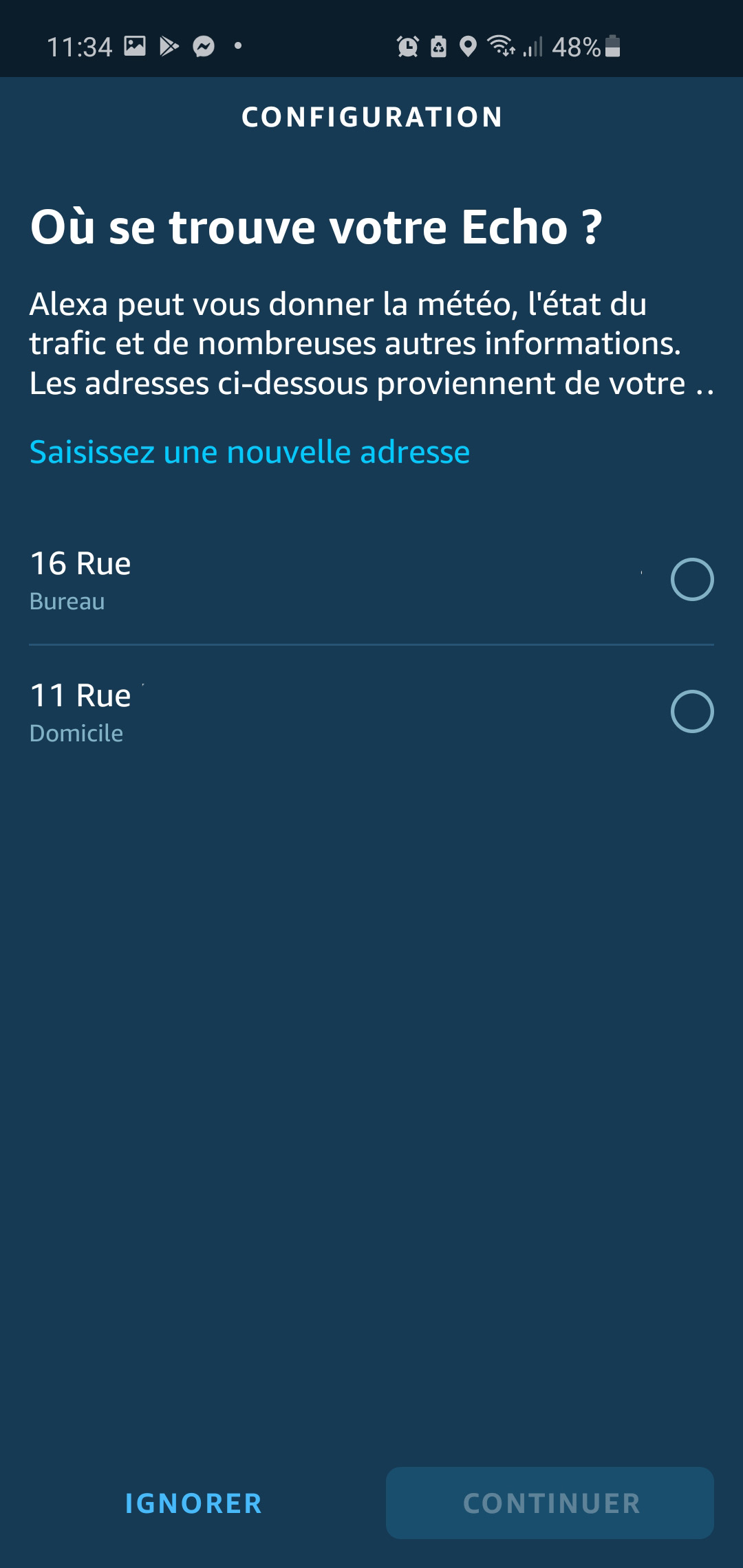 Il ne nous reste donc qu’à sélectionner un réseau Wi-Fi. Si vous êtes déjà utilisateur d’Alexa, nul besoin de renseigner vos identifiants, Alexa les a en mémoire. Sinon, il vous faudra le faire une première fois. Ensuite, vous pouvez définir dans quelle pièce votre Echo 4 prendra place et à quelle adresse vous vous trouvez, et c’est TER-MI-NÉ !