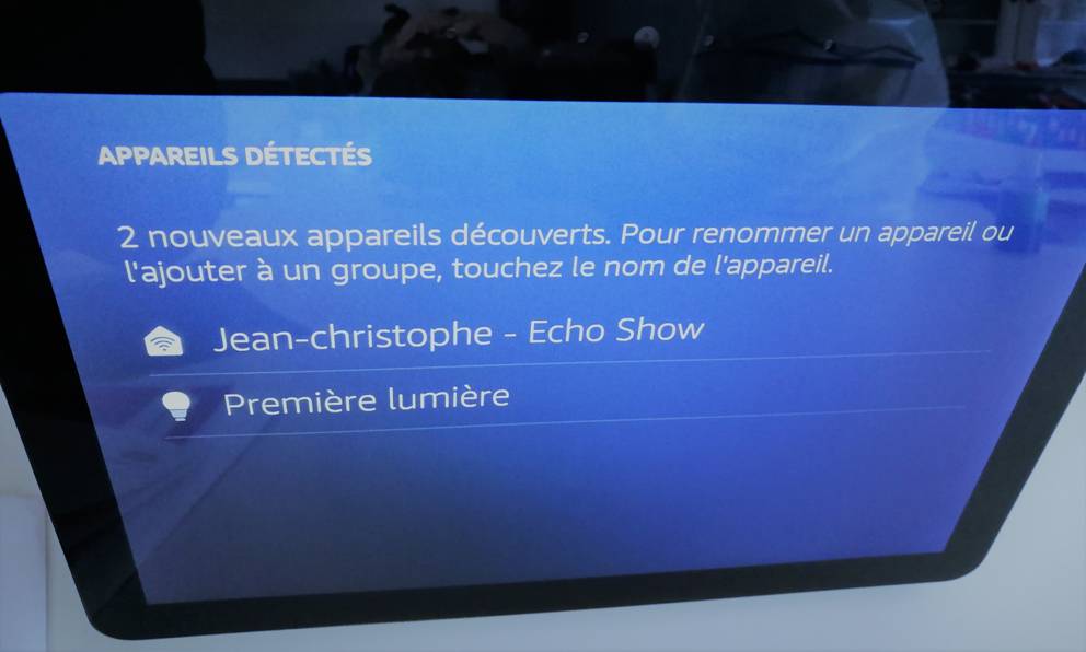 - Mettre l’ampoule en place, allumer et demander directement au Show 2 « Alexa, détectes mes appareils ». Et Alexa le fait. C’est ce que nous avons utilisé.
