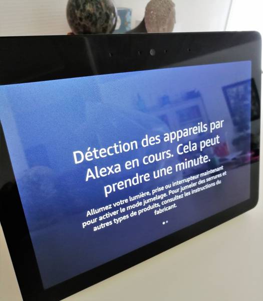 - Mettre l’ampoule en place, allumer et demander directement à Echo Show 2 « Alexa, détectes mes appareils ». Et Alexa le fait. C’est ce que nous avons utilisé car c’est plus… fun !