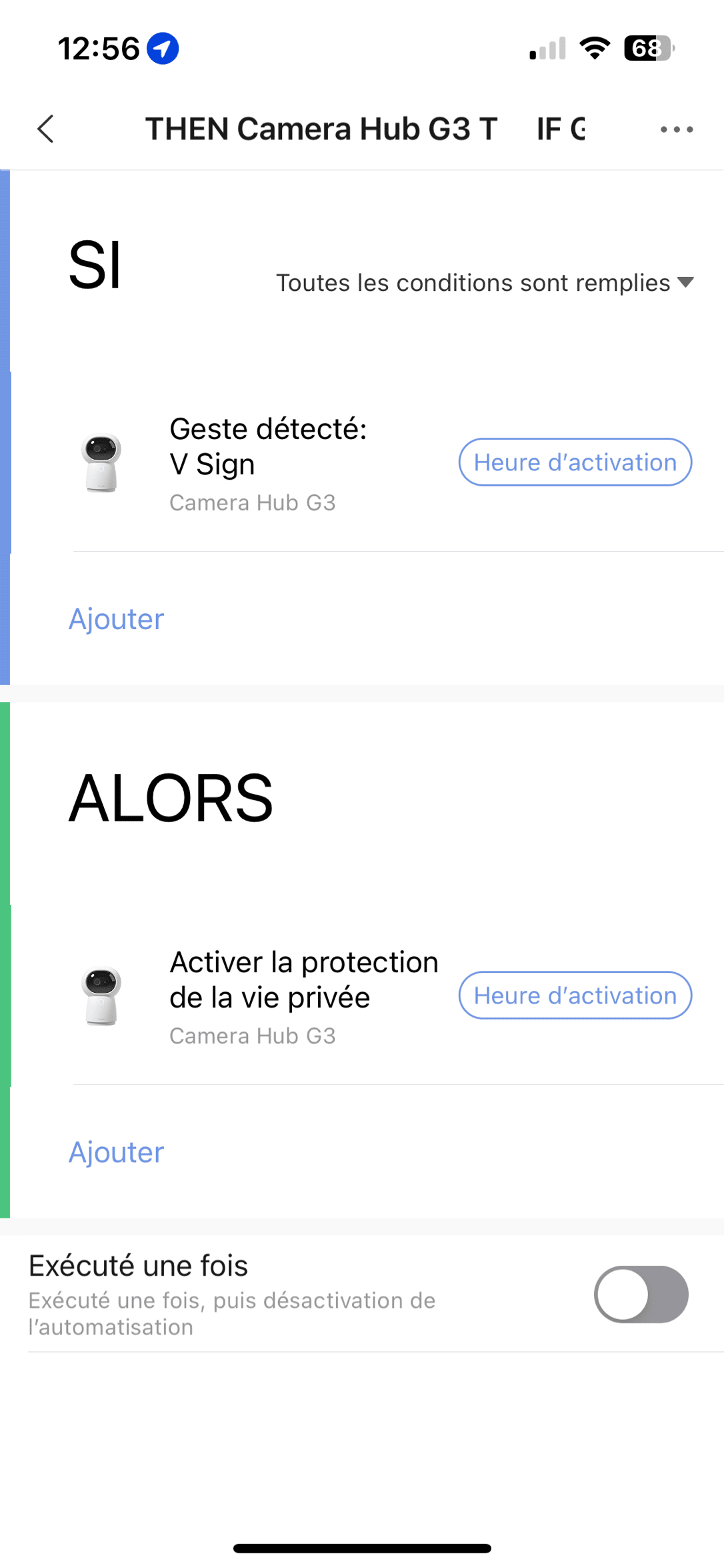Le but va être de tout automatiser. Pour la détection des visages et des gestes, il suffit de se rendre dans les paramètres de la caméra et de suivre la procédure, simple et rapide, très bien expliquée. La détection par la caméra Aqara G3 est ensuite bluffante de réactivité ! Moins d’une seconde sur tous nos tests… Et nous en avons faits quelques uns !