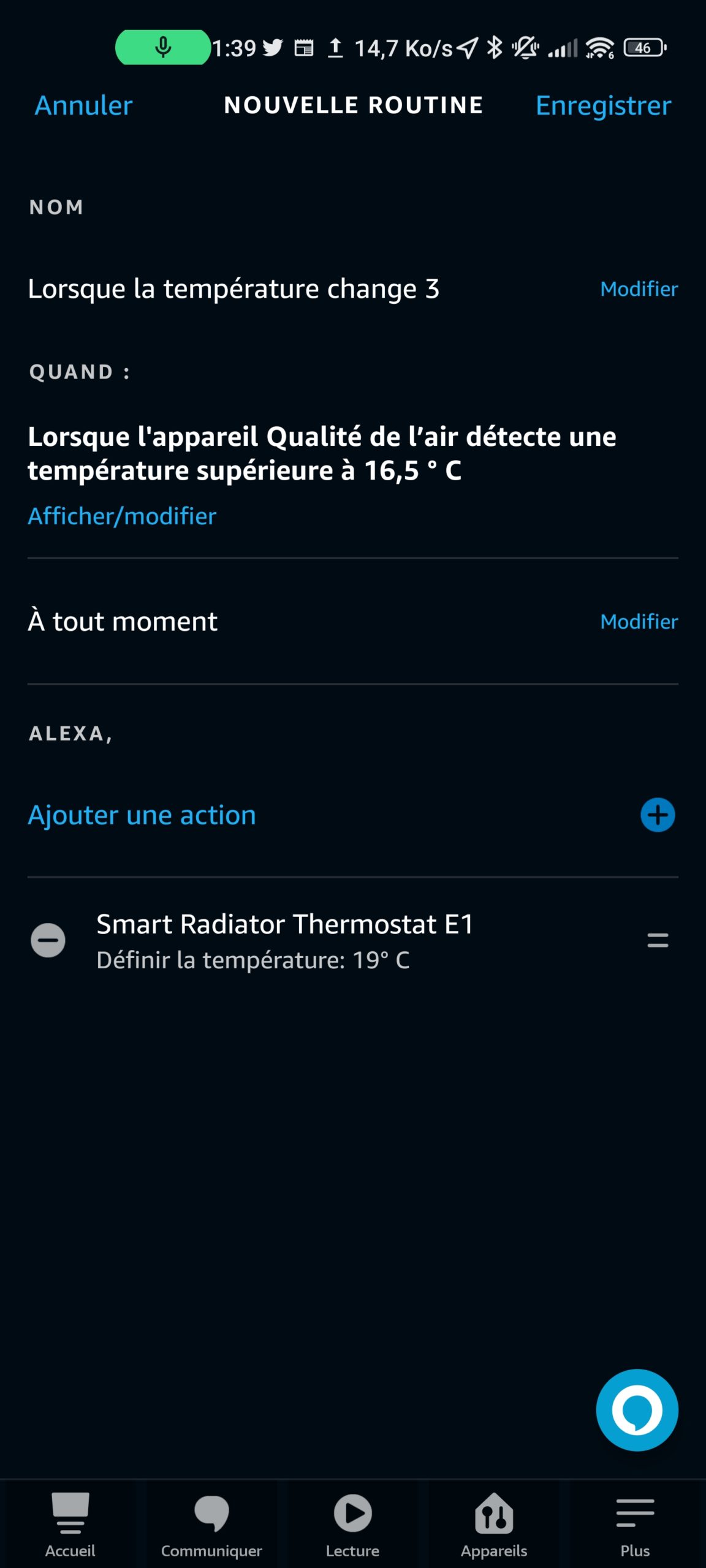 Il est possible de le placer dans les favoris maison connectée d’Alexa et, bien entendu, de faire des routines avec. Quant au contrôle vocal, ce sont les même commandes que pour n’importe quel thermostat. Au top ! Enfin, presque, puisque que notre Smart Radiator Thermostat n’est pour l’heure pas pris en charge sur le tableau de bord de nos Echo Show…