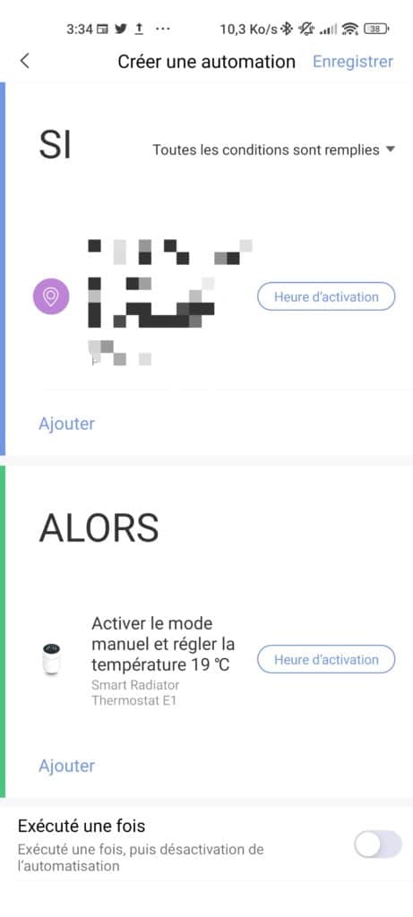 Autre option particulièrement intéressante, Aqara propose d’automatiser le Radiator Thermostat E1 à l’aide de la géolocalisation de votre smartphone. Autrement dit, il est possible de déclencher votre radiateur à une température donnée lorsque vous entrez dans une zone définie (minimum 100 mètres). Pratique et surtout gratuit contrairement aux thermostats Tado°.