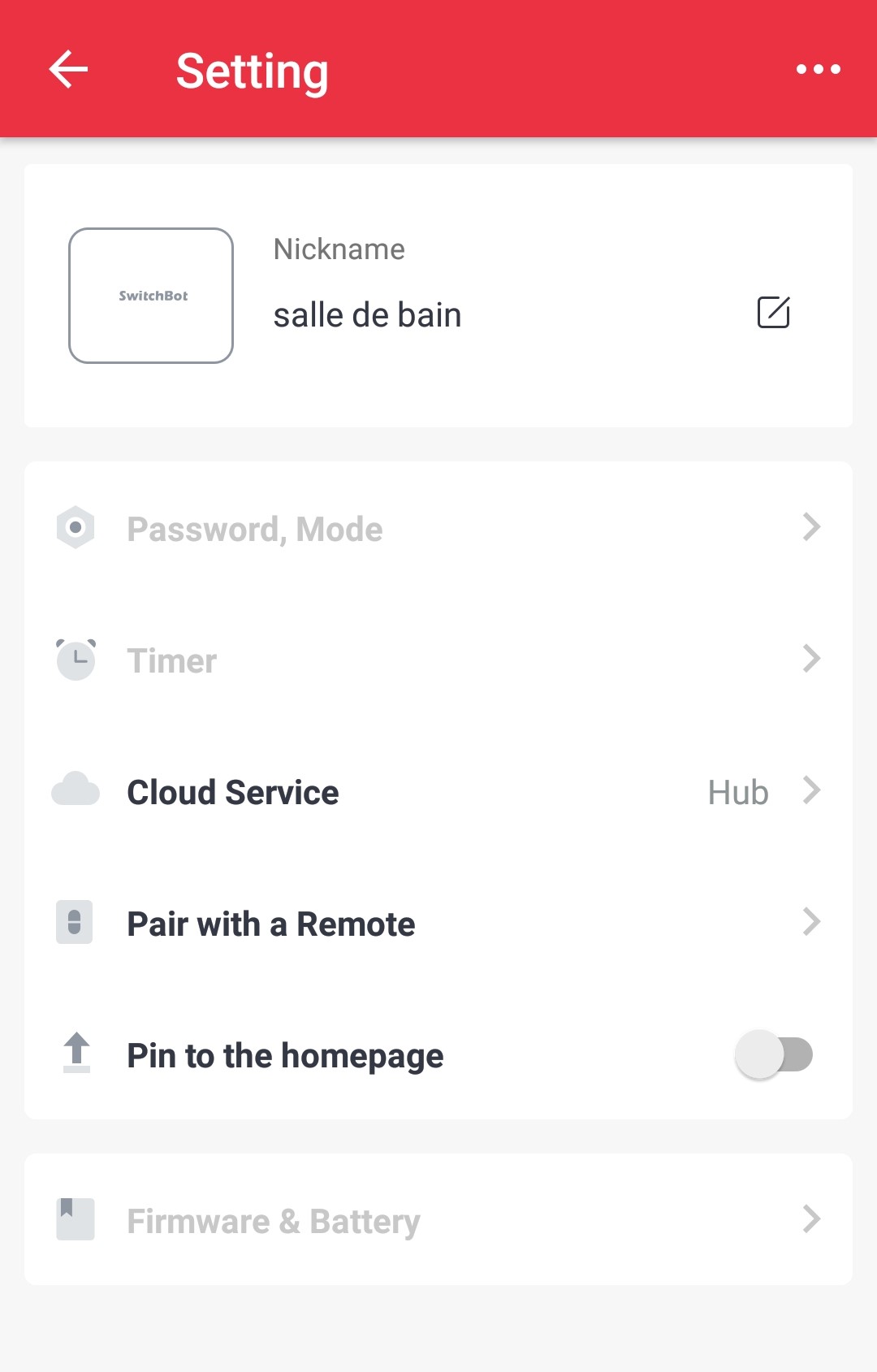 Dans l’état actuel des choses, votre SwitchBot est utilisable en fonction poussoir. Pour le mettre en fonction on/off, il faut entrer dans les paramètres et activer « Use light switch add-on ». Grâce à cela, deux boutons ON et OFF sont apparus dans l’application. En fonction de l’endroit où vous avez collé votre boitier, il est possible de devoir inverser le ON et le OFF, d’où le bouton inverse disponible dans les paramètres.