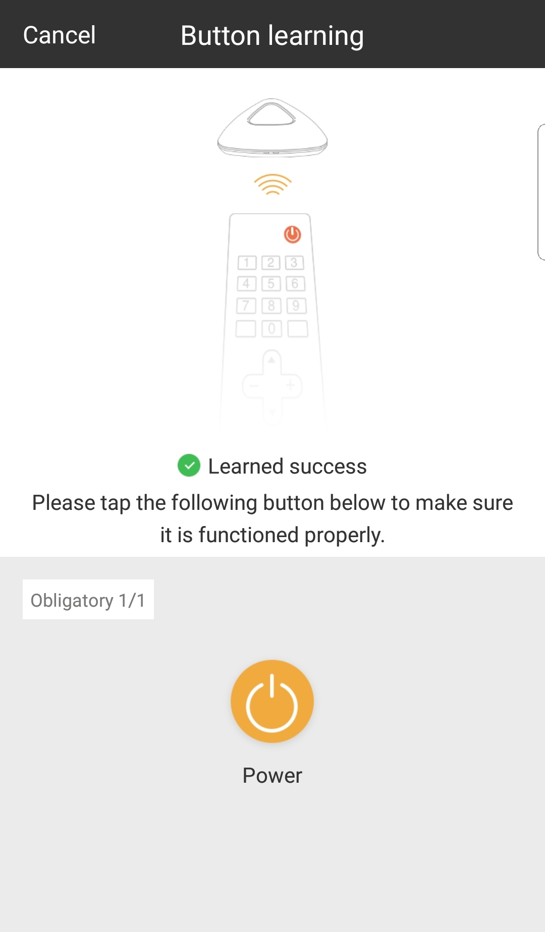 Chaque touche sera configurée puis testée dans la foulée. Si votre appareil ne répond pas aux commandes envoyées par le Broadlink RM pro+, vous pourrez recommencer.