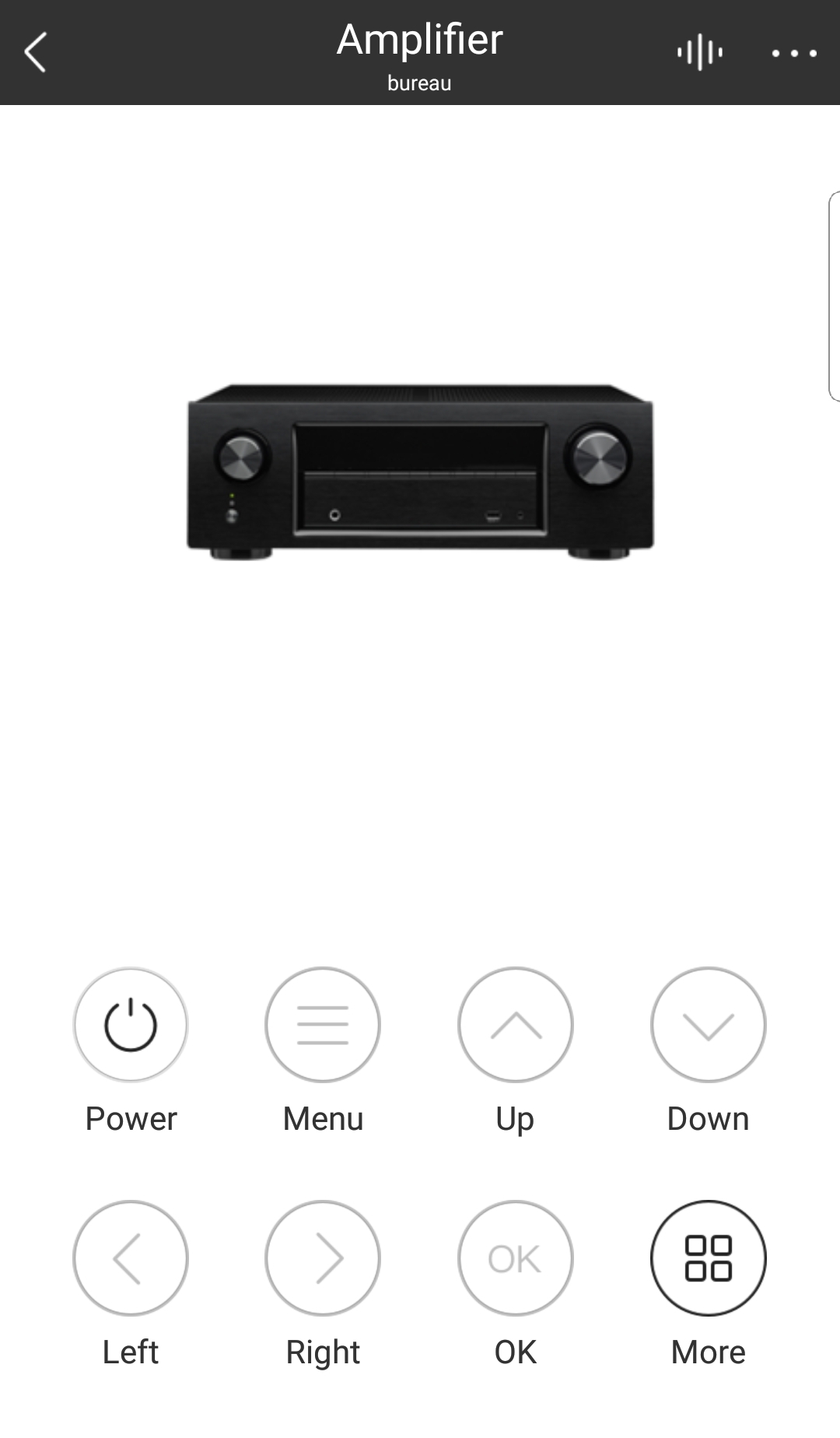 Prenons un autre exemple en faisant exécuter à l’appareil deux actions. Cela peut s’avérer pratique pour, par exemple, augmenter le son par palier de 2 ou 5. Un seul appui n’augmentant généralement que très peu ce dernier, il deviendrait fastidieux de le faire à la voix par palier de 1, il peut donc être intéressant d’augmenter un peu plus ce dernier. Dans notre cas, deux suffiront largement. Par ailleurs, la télécommande étant très réactive, inutile de mettre de temps d’attente, les actions s’effectuent bien l’une après l’autre et son bien captées par le récepteur infrarouge de l’amplificateur.