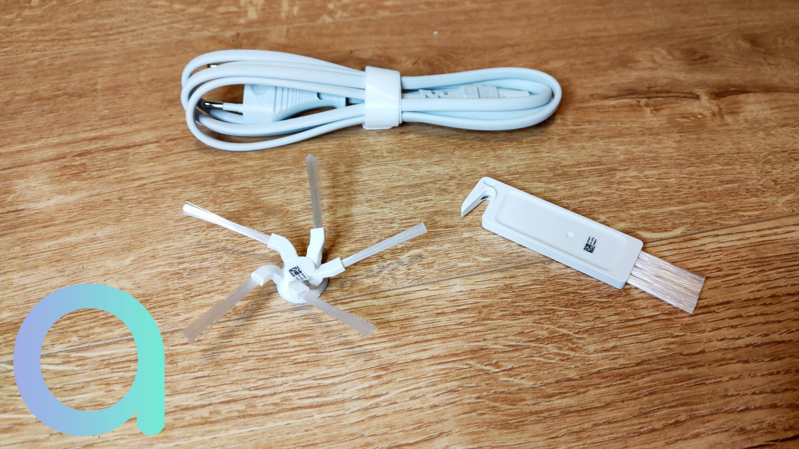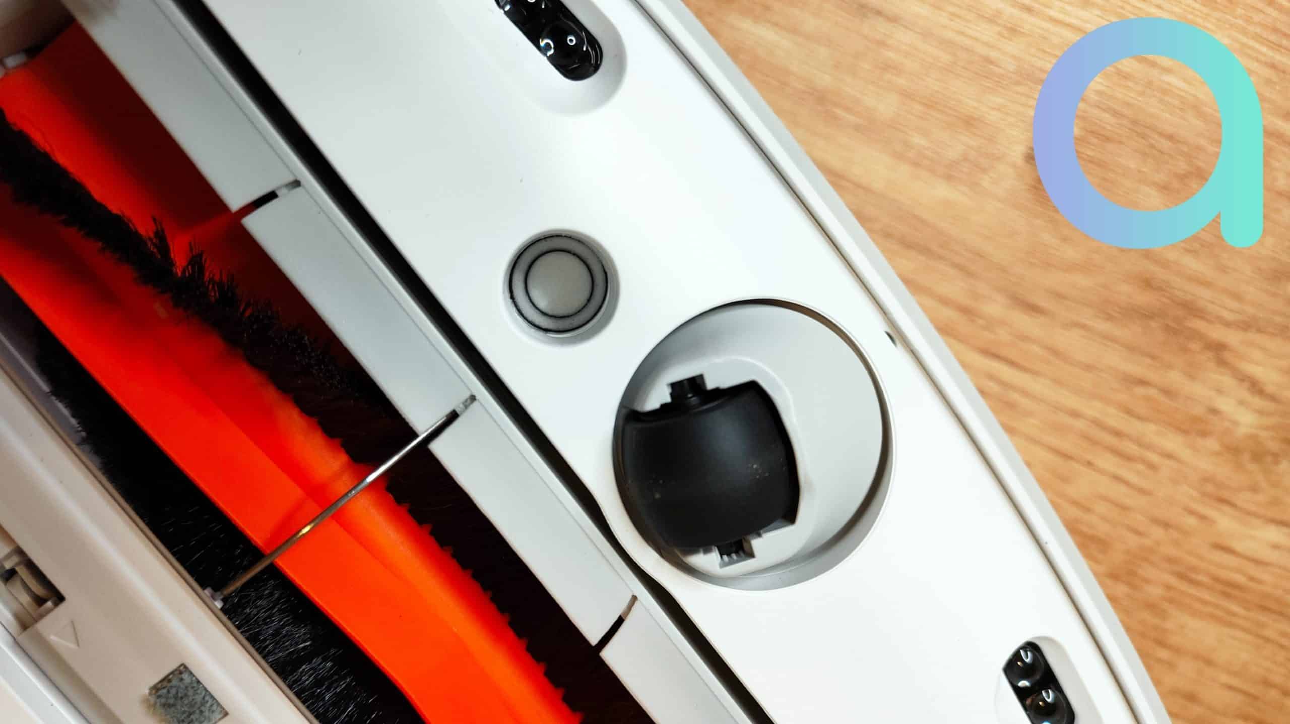 Il a également une brossette latérale à 5 branches, assez petites, mais suffisamment rigide pour bien nettoyer. C’est cet élément mobile, d’une durée de vie de 200 heures, qui viendra nettoyer sur les bords des murs. Là encore, pas de brossette d’avance.