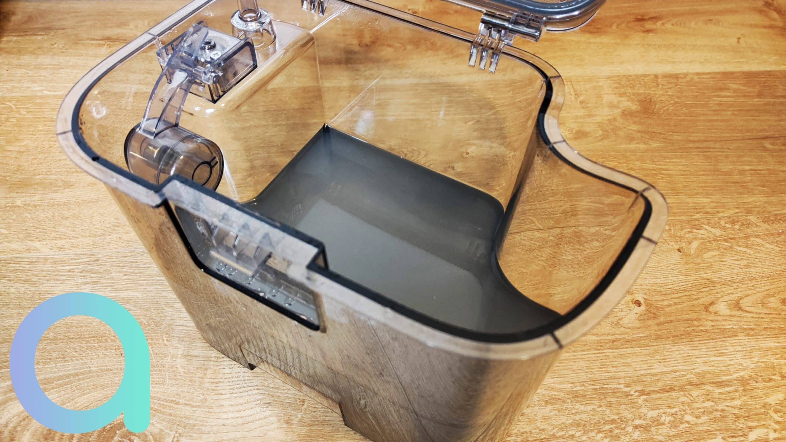 Le mode lavage est justement le meilleur que nous ayons testé. La rotation et la pression le rendent impressionnant à ce niveau. Nous avons testé en mettant du jus de fruit au sol et en le laissant faire. Tout a été lavé et le sol n’était pas collant. Les traces de pâtes de chat s’effacent par magie. Les sols sont propres et nets. Il n’y a qu’à voir l’état du réservoir d’eau sale pour s’en rendre compte.