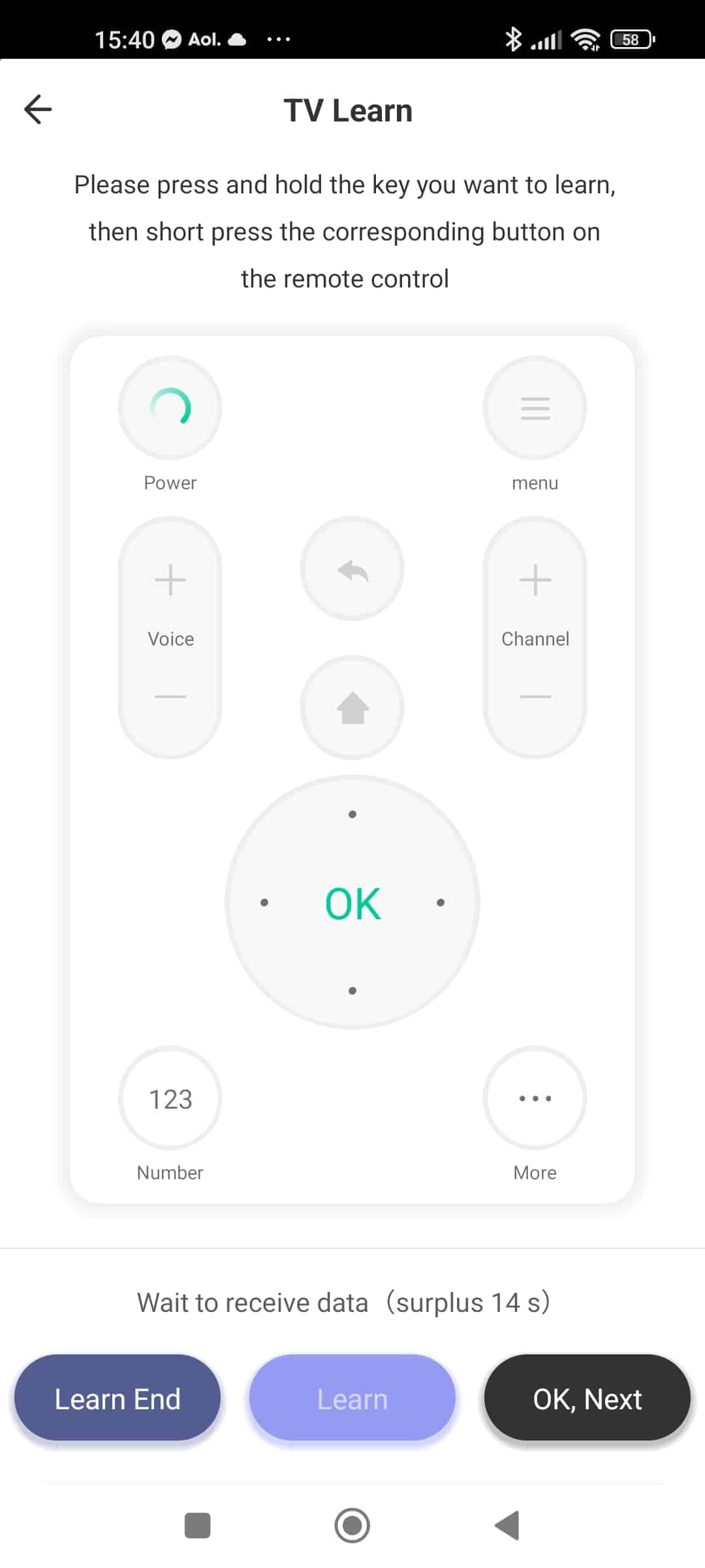 Ceci étant fait, il faut maintenant s’atteler à faire reconnaître une télécommande IR afin de piloter l’appareil associé via Smart Life ou à la voix avec nos assistants. L’acquisition de la télécommande est la phase la plus longue, mais elle ne présente pas de difficulté pour autant.