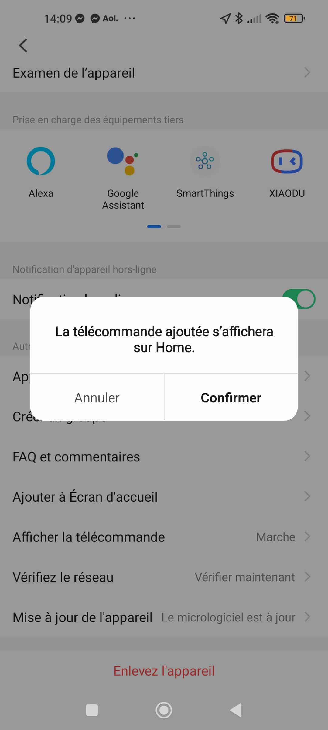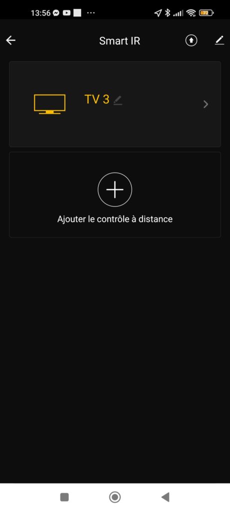 Une fois la configuration terminée de la télécommande celle-ci s’affiche dans la page principale de l’appareil.