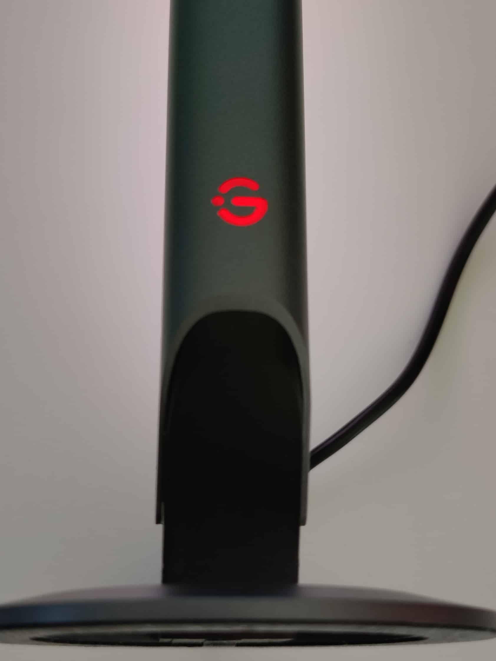 - 2 x barres LED RGBIC : leur design élancé est très sympa avec une belle longueur. En effet, elles sont bien plus grandes que mes « petites » Govee Flow Pro que nous avions déjà beaucoup appréciées. Elles mesurent 42.5 cm x 2.4 cm x 3 cm d’épaisseur dans la partie basse et 2 cm dans la partie haute. Elles reposent cabrées sur un socle de 8.6 cm de diamètre. Chacune des barres dispose d’un câble d’alimentation de 1.35 mètres qui seront reliés est relie par 15 cm de câble se terminant par une prise USB-C..
