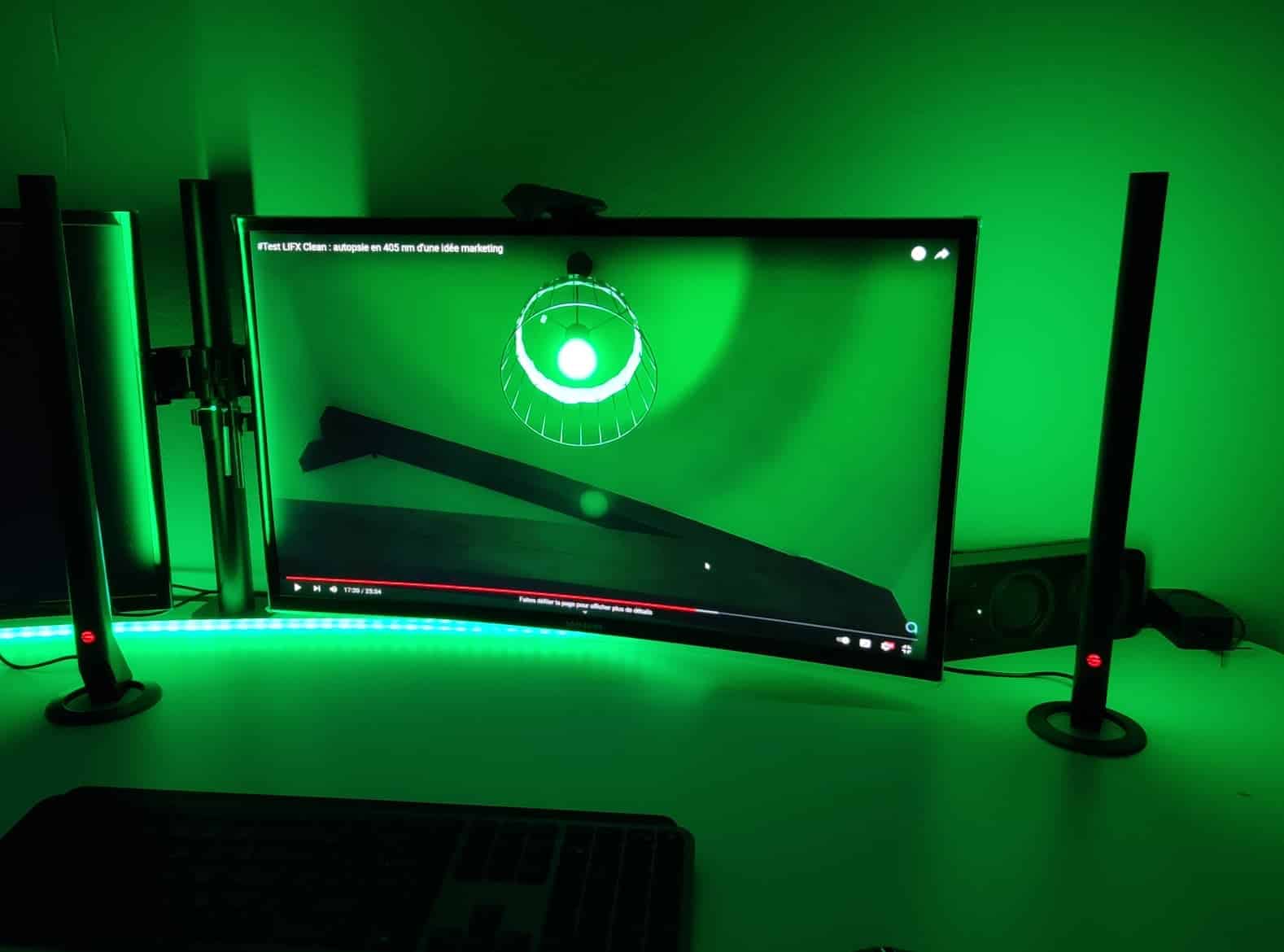 Concernant l’installation, le kit est dit « dédié » aux gamers, ce qui peut être restrictif puisqu’il existe aussi un mode cinéma très efficace qui permet d’envisager son installation sur un téléviseur. La synchronisation avec un ou plusieurs luminaires de la marque est LA nouveauté de ce dispositif pour une immersion intégrale. Le résultat est très convaincant et l’immersion totale. Le système est vraiment bluffant.