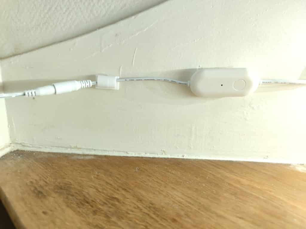 La télécommande a une vraie fonction ici. Elle n’est pas juste un ON/OFF physique. Nityam a su lui donner un rôle à part entière, c’est très bien et à noter. Elle est livrée avec un adhésif double face de forme ovale et un support de câble. Ce dernier s’entre-ouvre (très peu) pour maintenir le plus fin des câbles, celui avec la fiche DC.