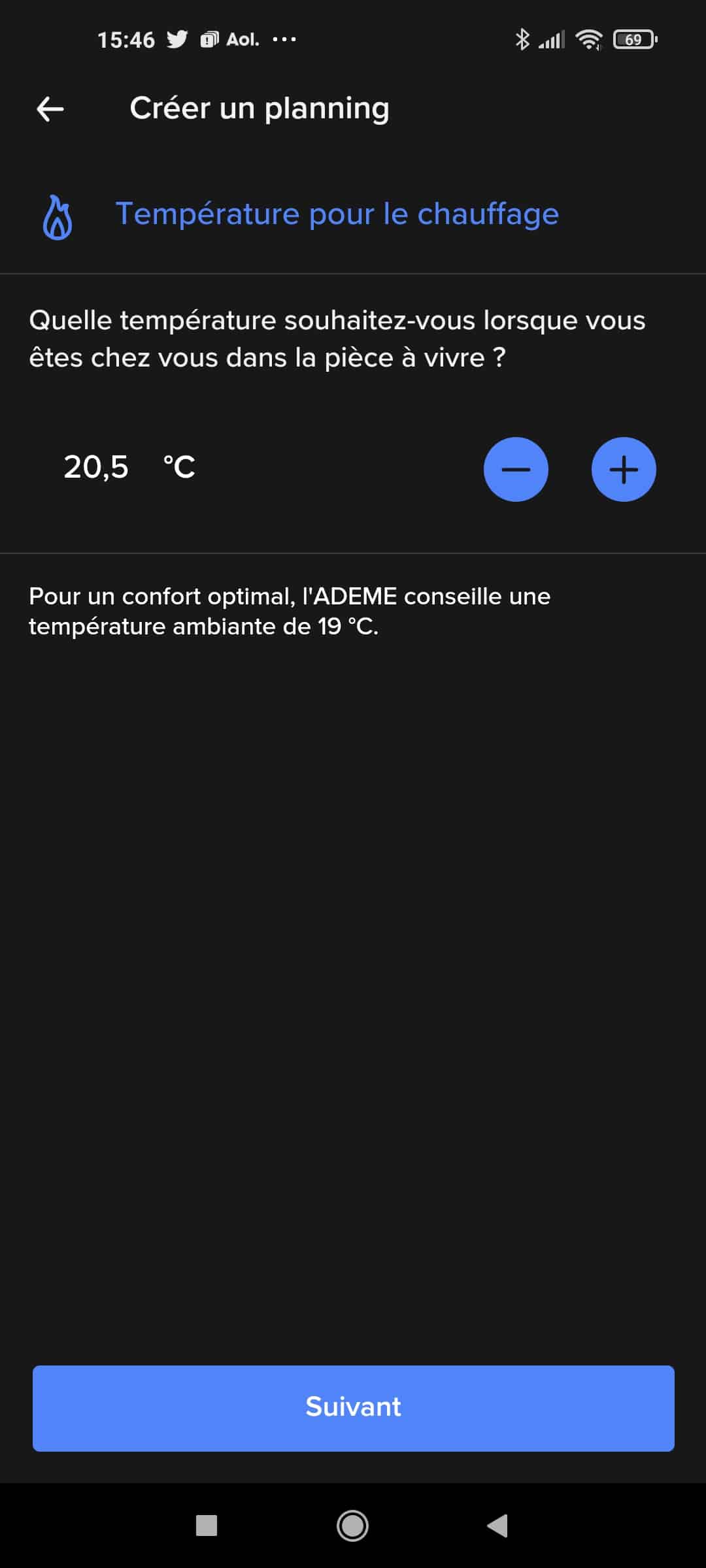 - Planning de température .
