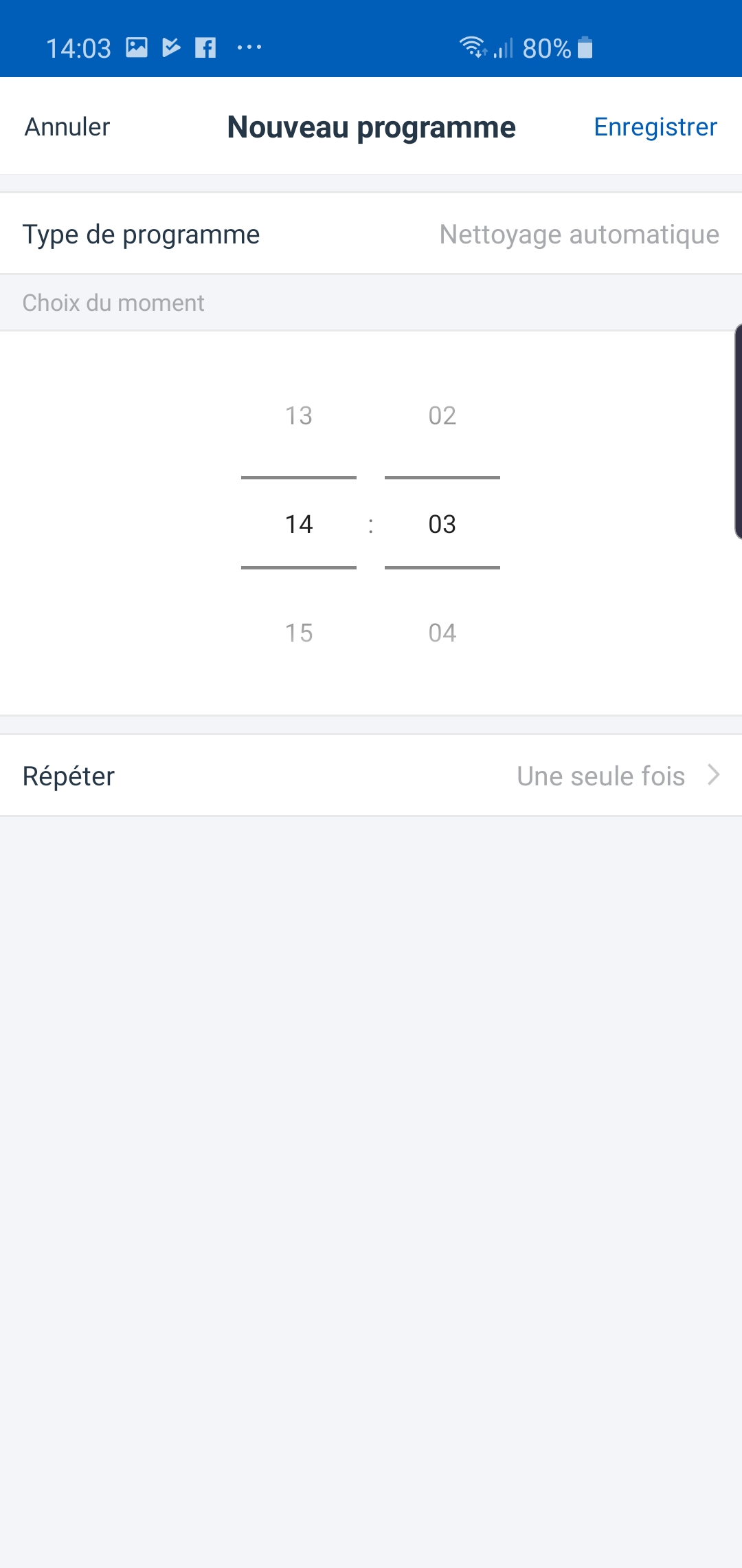 Vous pouvez également programme les heures de nettoyage simplement dans l’application.
