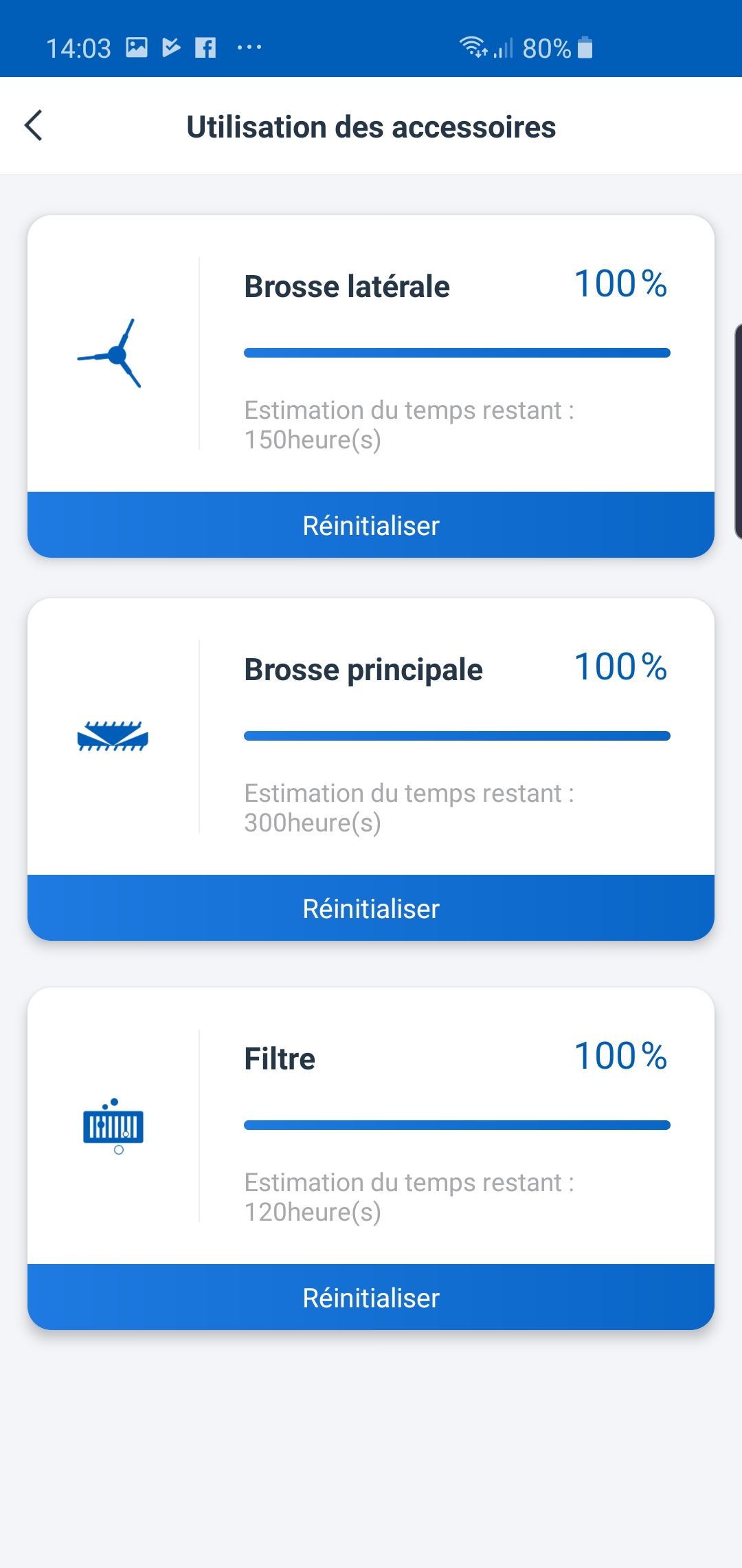 Enfin, vous pouvez évidemment consulter le log du robot avec son journal de nettoyage. Pratique pour vérifier si votre nouvel esclave a bien exécuter son travail! Vous trouvez même une jauge d’utilisation des accessoires pour savoir précisément quand change les différents consommables de nettoyage. Intelligent car nous savons pas forcément toujours quand changer telle ou telle brosse ou si le filtre à particule est toujours efficace.