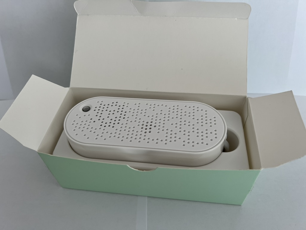 Pas de surprise concernant la présentation de cette Frient Smart Siren, nous retrouvons le code couleur sobre de la marque et une petite boite rectangulaire de 14,5 cm x 6,5 cm pour 5,5 cm de hauteur. Simple en façade, explication succincte du produit au dos, et au dos, les références et code barre du produit. Un packaging épuré donc.