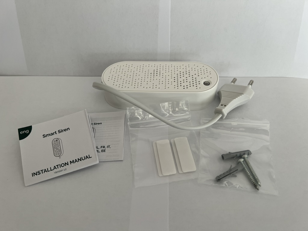 A l’intérieur, nous découvrons la Frient Smart Siren livrée avec divers accessoires :