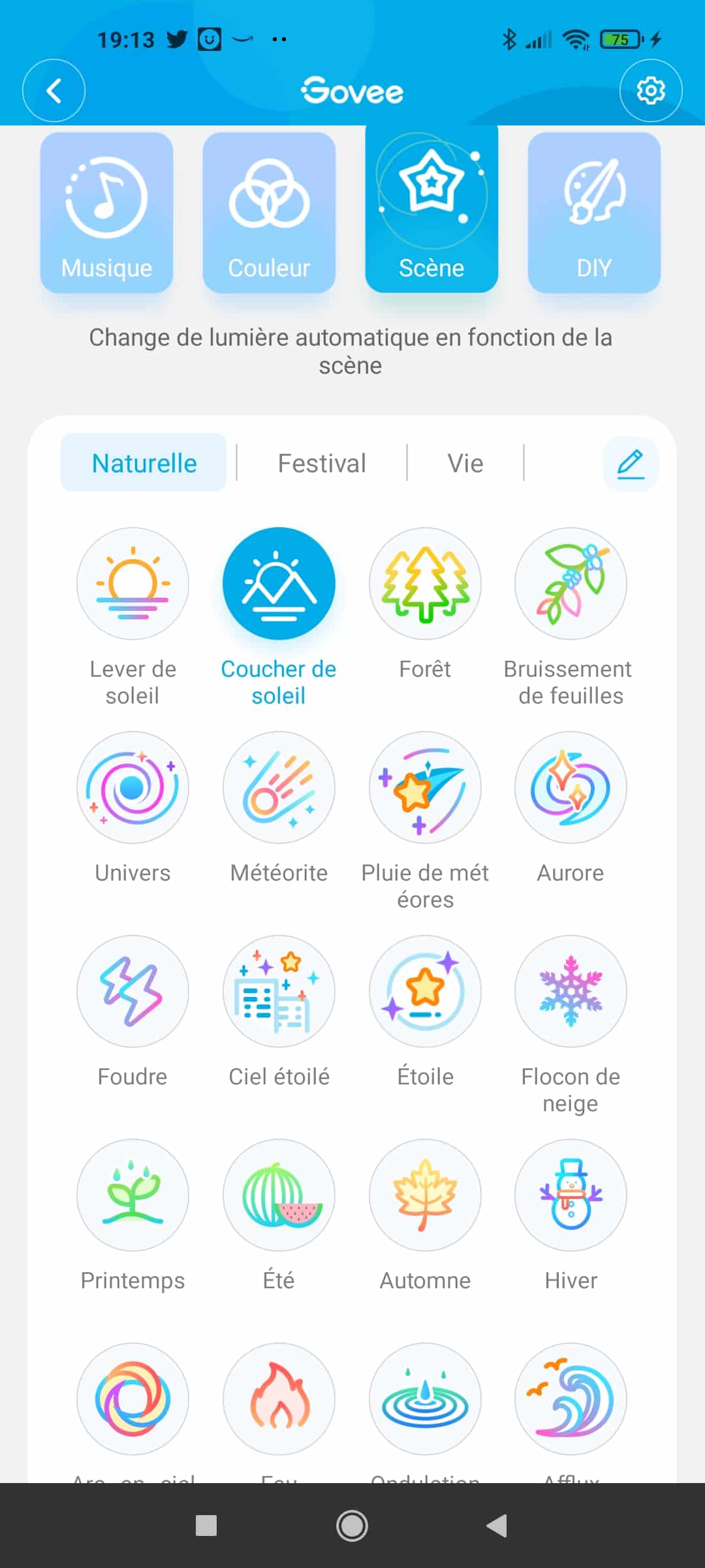 Mais ce que Govee propose en plus le mode Scène et Musique. Ainsi la scène « lever de soleil » peut être exécutée par Alexa. Pour simplifier l’interaction vocal, nous vous conseillons de renommer le ruban.