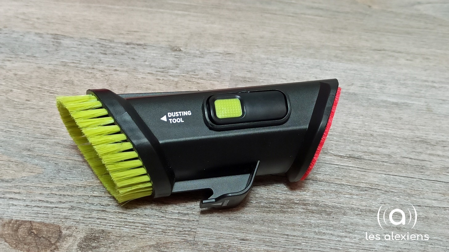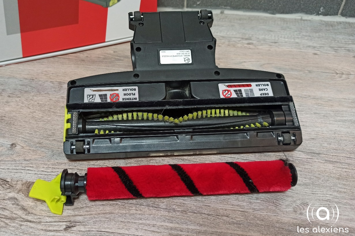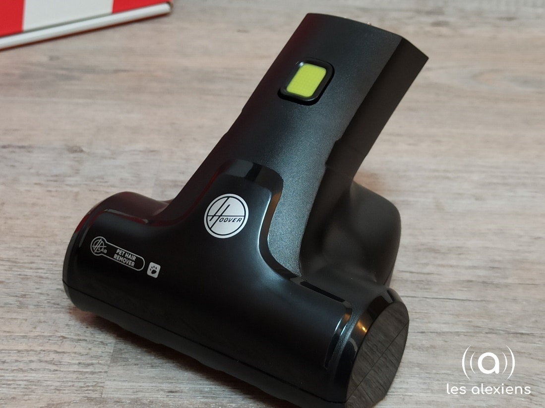 - Les différentes brosses sont alimentées par le moteur afin d’allumer les LED permettant une meilleure visualisation des saletés à aspirer. Vraiment, c’est top !