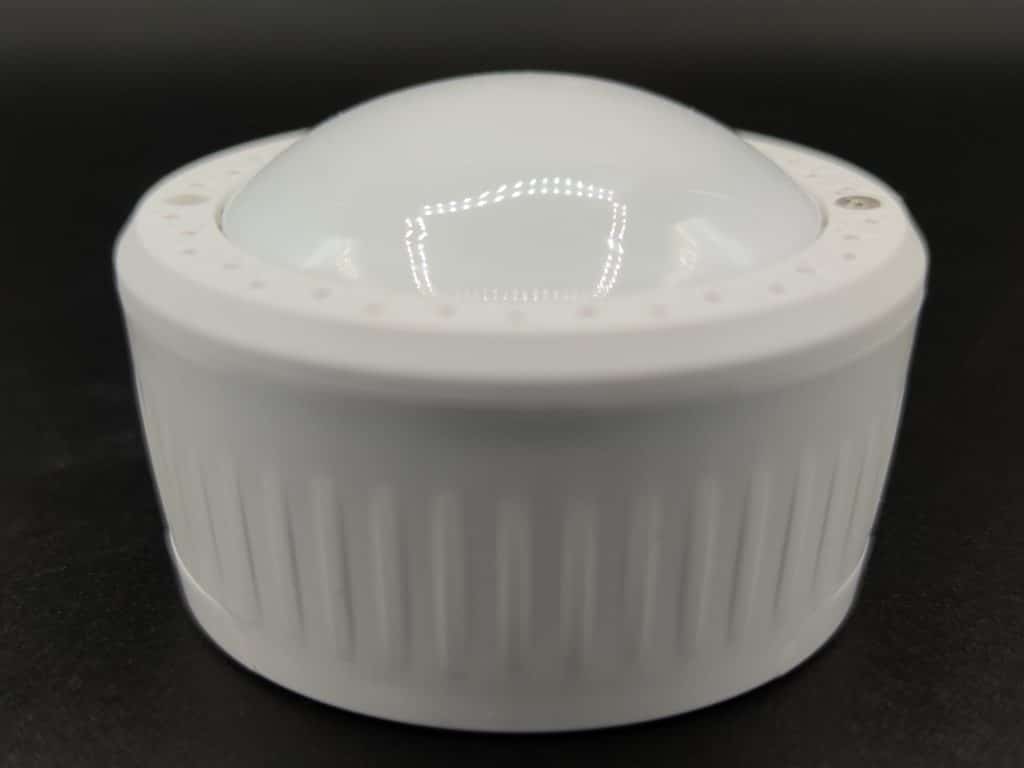 - La LED témoin de fonctionnement (au dessus). Elle servira pour l’appairage et s’illuminera par la suite, si la fonction est activée, lors d’un mouvement détecté.