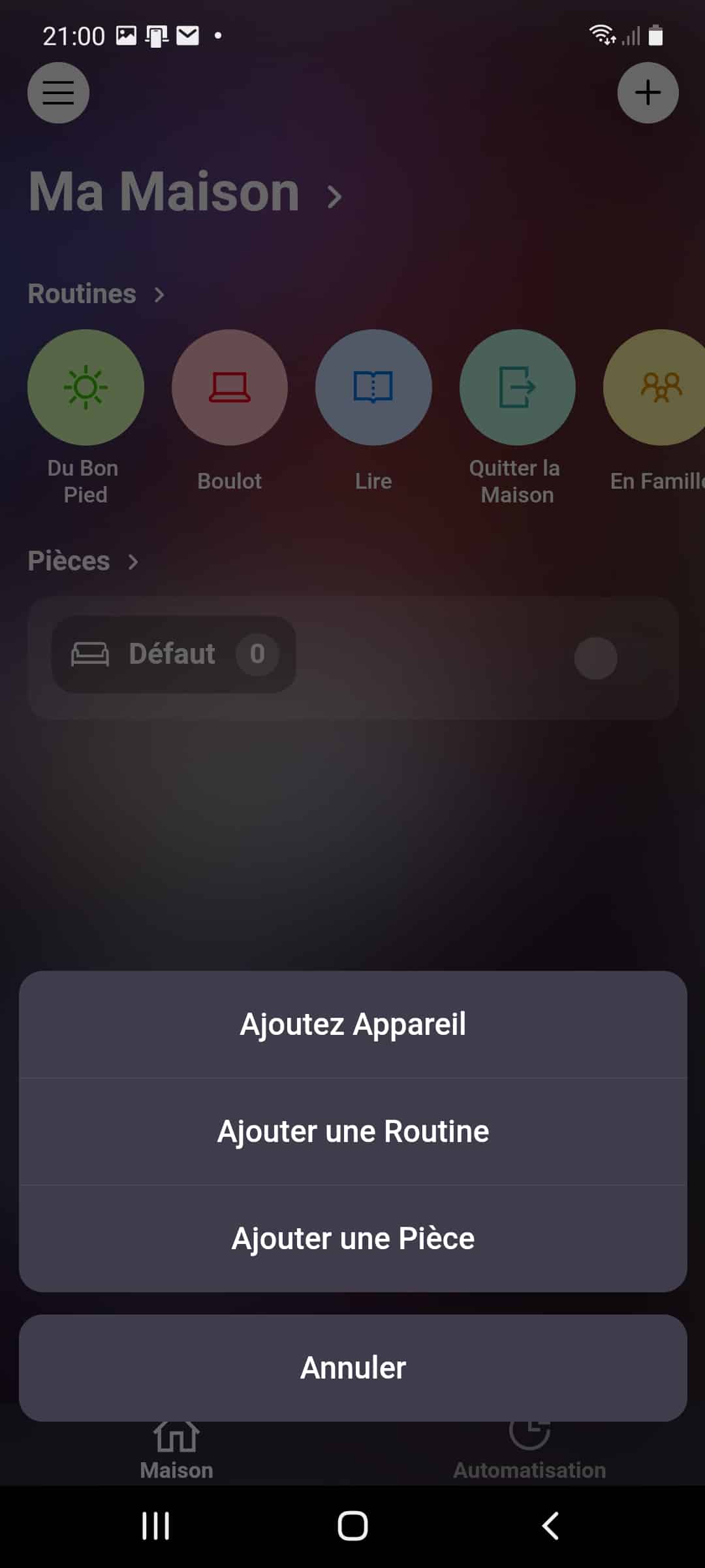 En cliquant sur « Ma Maison >« , vous pouvez créer une nouvelle maison, par exemple pour une résidence secondaire ou bien accéder à sa gestion, donner accès à un tiers… Vous pouvez aussi choisir un autre fond d’écran pour la maison parmi les trois proposés. Tous sont sur un « aspect flouté » pas forcément génial, question de goûts néanmoins…