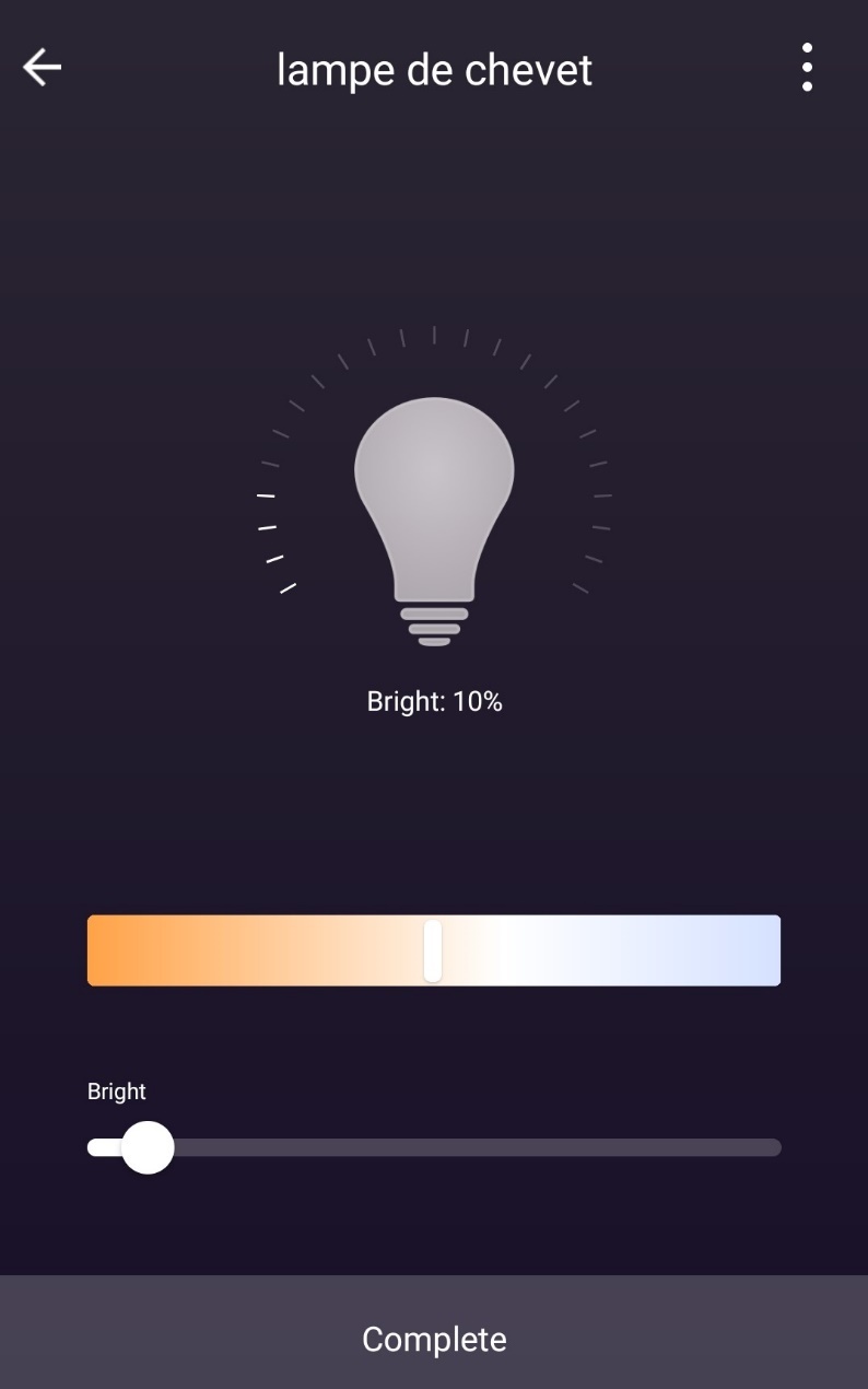 Dans l’application, vous allez pouvoir piloter l’ampoule de deux façons différentes :